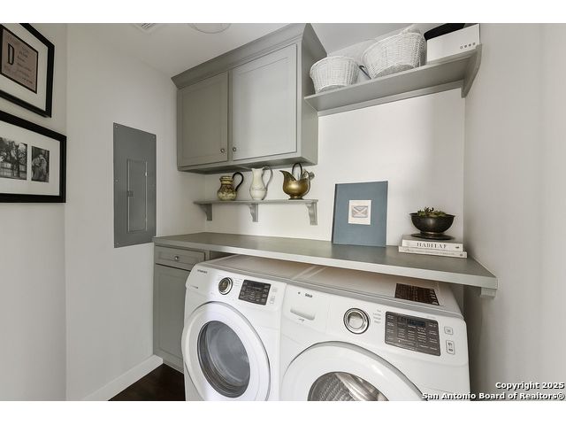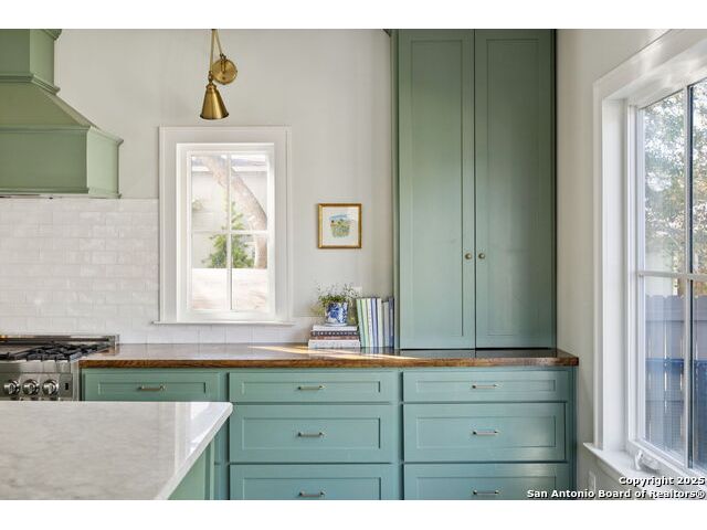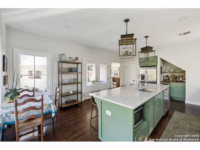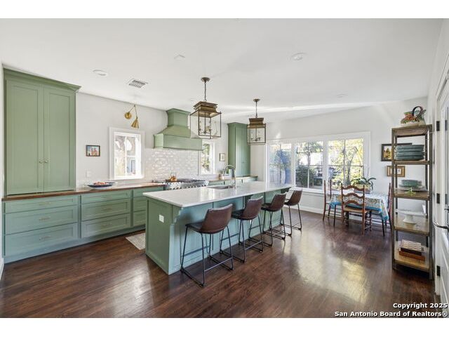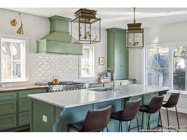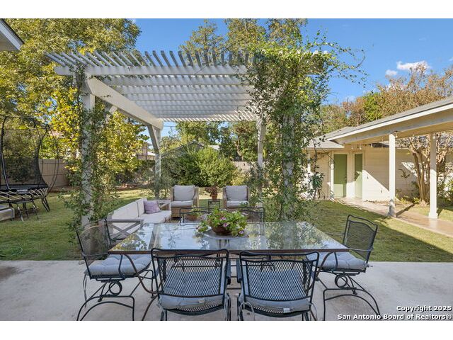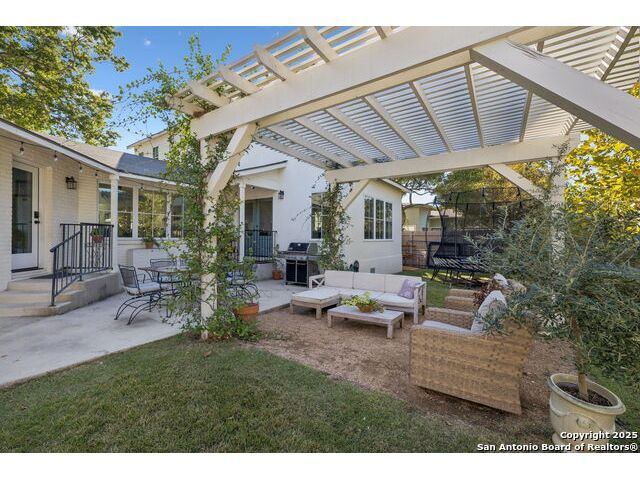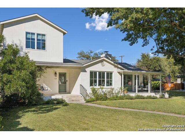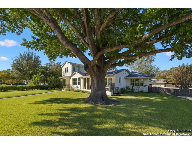 Wow, what a house! Fully reimagined from top to bottom (and inside-out), this 4 bed, 4.5 bath home blends modern function with timeless charm. Every bedroom enjoys its own private bath, while a separate office (with half bath) adds the perfect flex space. The kitchen is a chef's dream: 48" ZLine gas range, Carrara marble island, hardwood counters, and walk-in pantry. Natural light fills the living and dining rooms, leading to a serene primary suite with 10-ft arched ceiling, marble bathroom, and a walk-in closet. A 1st floor bedroom suite is the perfect place for visiting family. Upstairs, two serene treetop bedrooms with vaulted ceilings garner beautiful views of the property. Outside? Pure relaxation. Sip coffee on the shaded front porch (under the heritage oak tree), party under the pergola, or cozy up by the fire pit. A breezeway connects the main home to a two-car garage with a workshop. Perfectly positioned just one block from Woodridge Elementary and Alamo Heights Junior School, this home makes daily life effortless. Beautifully crafted and thoughtfully designed--"move-in ready" never looked (or felt) this good.
