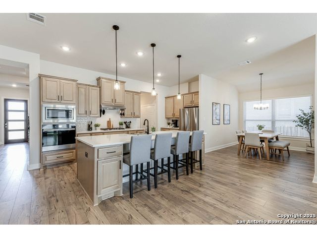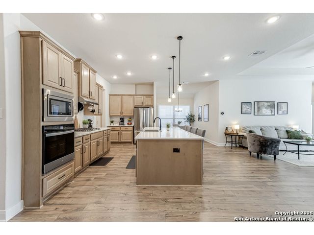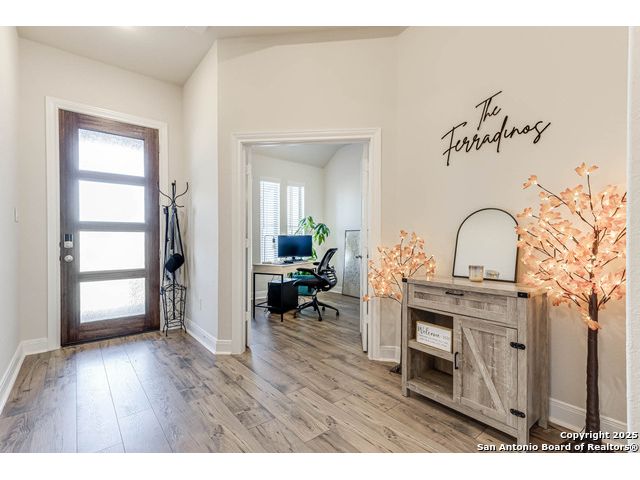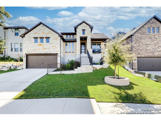This is the Stone Oak area gem you've been waiting for! A truly one-of-a-kind home in Coronado, this 4-bedroom, 3-bathroom residence was newly built in 2023. Designed with a modern, open-concept layout and thoughtfully chosen finishes, this home stands apart with its blend of contemporary style and warm, modern farmhouse character. The elevated front porch is spacious and perfect for morning coffee or evening sunsets with its peaceful horizon views. Inside, rustic chestnut-toned laminate floors flow through the kitchen and main living area, complementing the wheat-color cabinetry and white quartz countertops. The kitchen also features a stainless steel undermount apron sink and stainless steel appliances. The spacious primary suite offers bay windows perfect for use as a reading nook or decorative space, an extra-large walk-in shower lined with classic subway tile, and a spacious walk-in closet. For those seeking a little extra space, you'll find it here with an additional office and rec room that can be utilized as a second workspace, playroom, home library, or creative studio. Out back, enjoy a Texas-sized outdoor living space with an expansive covered patio and a charming pergola area, perfect for entertaining or cozy family evenings. Additional highlights include a large, three-car garage with abundant storage and zoning within the highly rated NEISD school district. Tucked right off 281, accessed through a tree-lined road that quiets the city noise, and minutes from Sam's, HEB Plus, and Stone Oak Village, the Coronado community offers both serenity and convenience. Come discover this home that combines modern living and peaceful comfort.