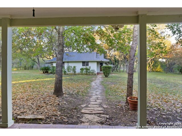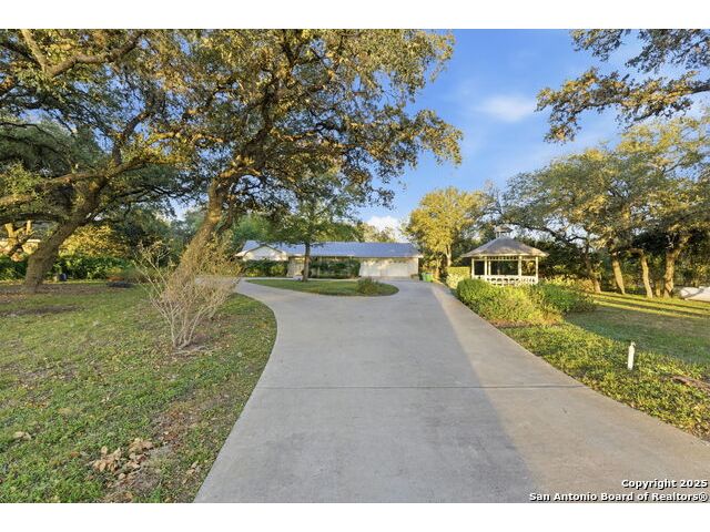 2 Beautiful Tree Filled Acres & 2 Beautiful Homes! Lots of options to explore with this well cared for place! Have an income producing guest home / VRBO or place for family / friends to live. As you arrive through the gates you will be greeted with oak trees, a gazebo, and circular drive. The main home features an updated island kitchen with gorgeous custom cabinets & granite countertops. The handsome brick fireplace is the focal point of the dining room and open to the kitchen. Oversized garage with a full bath! HUGE covered patio area for relaxing and enjoying the views of the backyard. The well appointed guest home has 2 bedrooms / 1 bath / 1 living area / eat-in kitchen. Fenced in garden area for all your veggies! There's a 500 foot well on the Edwards Aquifer for excellent water and the main home has a water softener system included. Tankless water heater, metal roofs, & John Deere lawn tractor included! County Road 381 is almost completed for easy access. Come see this amazing place TODAY!