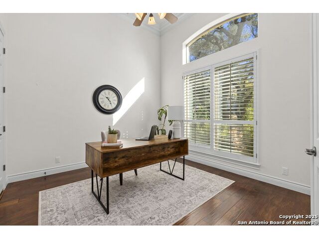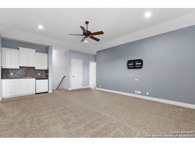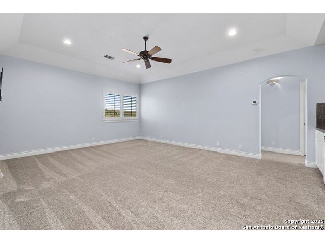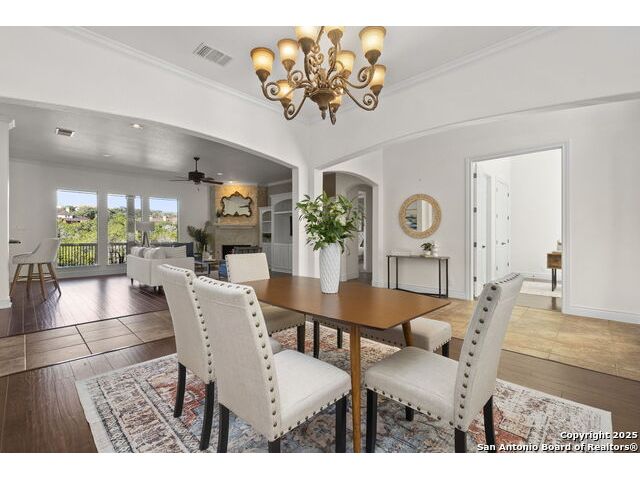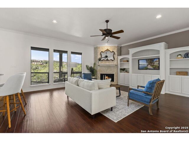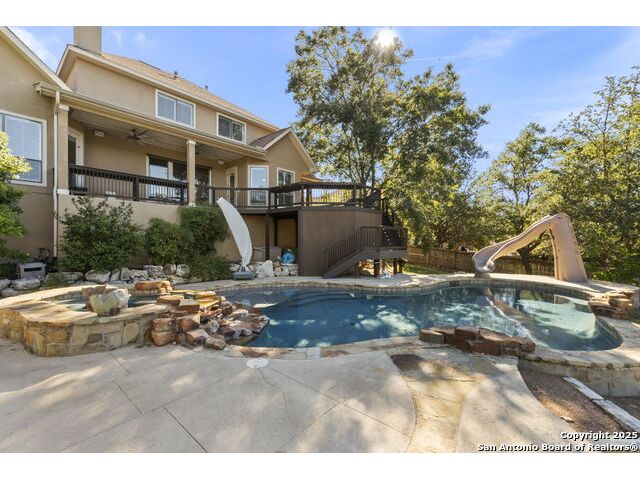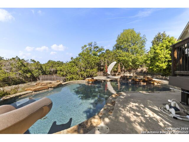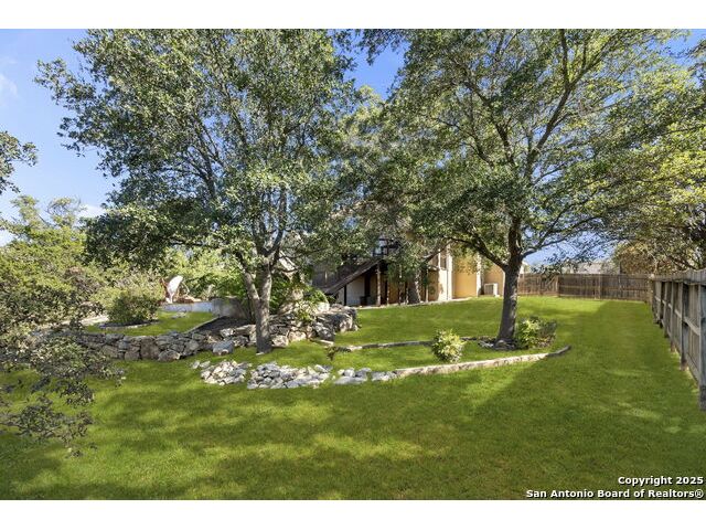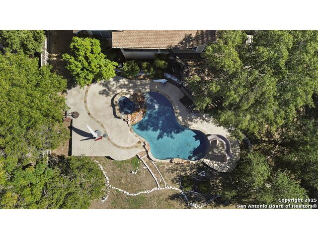 Stunning Monticello-built home in the desirable gated community of Evans Ranch! This spacious 5-bedroom, 4.5-bath home offers over 4,000 sq. ft. of refined living with a functional open layout, soaring ceilings, and abundant natural light. The chef's kitchen is an entertainer's dream with a large island, double ovens, gas cooking, and seamless flow into the family and dining areas. Two bedrooms, including the primary suite, are conveniently located downstairs. The secondary downstairs bedroom features a full bath with direct access to the deck-perfect as a guest suite or cabana bath for poolside convenience. Upstairs, you'll find three additional bedrooms and two full baths, including a Jack-and-Jill layout, plus a spacious game room with a wet bar area, ideal for entertaining or movie nights. Step outside to your private backyard retreat-an entertainer's paradise featuring a sparkling heated pool and spa, expansive patios, mature trees, and Trex decking for easy maintenance and lasting beauty. Perfect for gatherings or quiet evenings under the stars. Enjoy the privacy and tranquility of the greenbelt lot while being minutes from shopping, and dining. Top Rated NEISD schools. There is a private gate that opens to Roan Forest Elementary for the ease of drop-offs and pickups. The Middle School is also just down the street and Johnson High School is nearby.