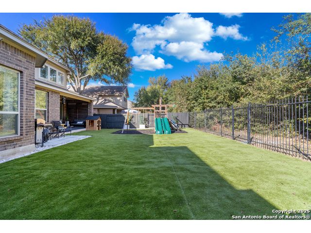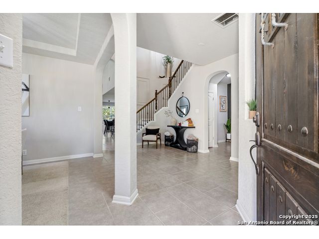 Exquisite Fully Furnished Home in the Prestigious Gated Community of Triana - Helotes, TX Experience refined living in this beautifully appointed, fully furnished residence nestled within the exclusive gated enclave of Triana in Helotes. Perfectly positioned along a tranquil greenbelt, this home offers the ideal combination of privacy, sophistication, and natural beauty. Step inside to discover soaring high ceilings, an open-concept layout, and designer finishes throughout. The gourmet kitchen and thoughtfully curated interiors create a seamless blend of comfort and elegance, ideal for both everyday living and entertaining. The backyard oasis features premium turf landscaping for easy maintenance and year-round appeal-an inviting space for outdoor relaxation and gatherings. This remarkable home embodies the essence of luxury and convenience, all within one of Helotes' most sought-after gated communities. Opportunities like this are rare-schedule your private showing today before it's gone.