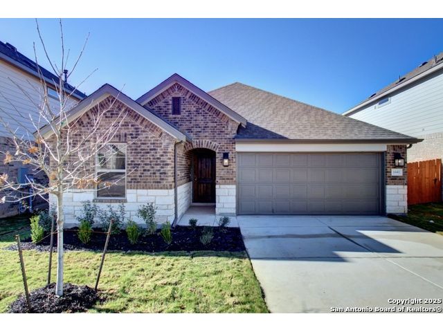 Welcome to the Bermuda plan located in the beautiful community of Stream Waters. This charming neighborhood features a natural brook, pickleball courts, and community walking paths designed for relaxation and recreation. This thoughtfully designed single story home offers three bedrooms and two full bathrooms with an inviting covered patio for outdoor enjoyment. The kitchen is the heart of the home, featuring a spacious center island, stainless steel appliances, gas cooking, a corner pantry, and a cozy casual dining area with a window seat. The extended owner's suite offers a peaceful retreat with multiple windows that fill the room with natural light. The private owner's bath includes a water closet, shower, dual vanities, a linen closet, and an expansive walk in closet with abundant storage space. The owner's suite is situated at the rear of the home for added privacy, while the two secondary bedrooms are located toward the front of the home, providing separation and comfort for family or guests. The Bermuda plan combines style, comfort, and convenience, making it a great option in the serene Stream Waters community.