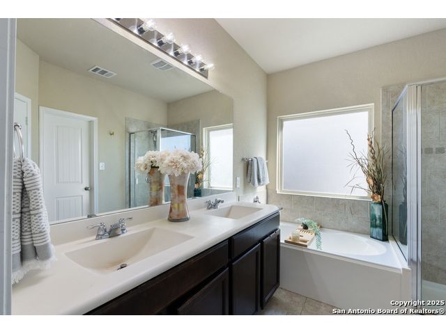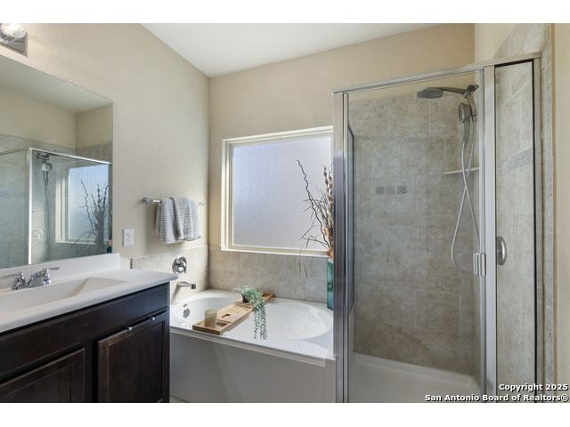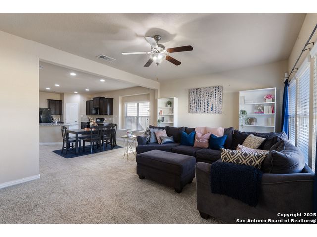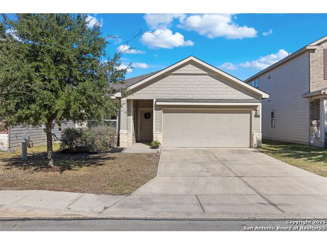 Welcome to this charming one-story San Antonio home and step inside to discover a warm, inviting layout featuring an open-concept kitchen with granite countertops, rich cabinetry, gas cooking, and a spacious island that flows seamlessly into the dining and living areas-perfect for entertaining. A front flex room with double doors offers the ideal space for a home office or sitting area. The primary suite provides a peaceful retreat with a private en-suite bath featuring a separate garden tub and walk-in shower. Two additional bedrooms and a second full bathroom round out the well-designed interior. Step outside to enjoy the covered back patio and a fully fenced yard ready for relaxation or gatherings. Added peace of mind comes with a roof that's just 2 years old and a brand new indoor A/C unit installed 1 year ago. Located near Loop 1604, Hwy 90, and Lackland AFB, this home combines comfort, efficiency, and location in one neat package.