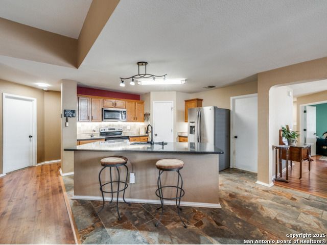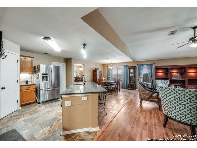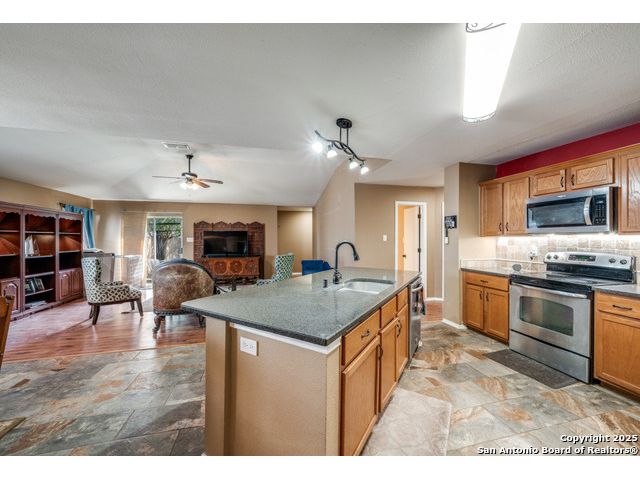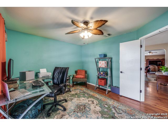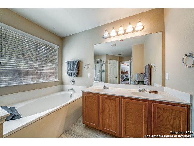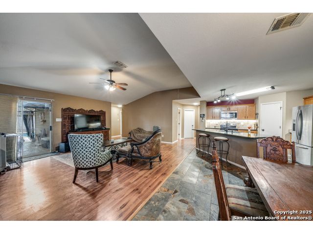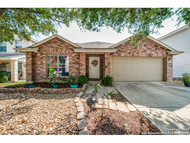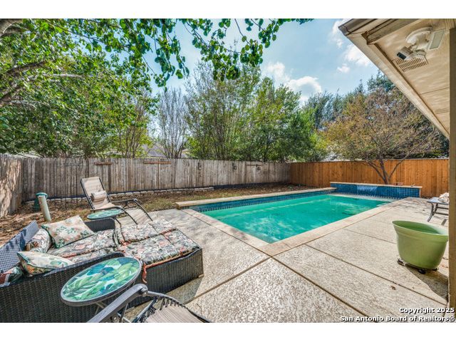 Discover your dream home at 7418 Tamburo Trail, a beautifully designed 4-bedroom, 2-bath residence spanning 2,125 sq ft in the desirable Rolling Meadows subdivision. This single-story gem combines modern comfort with thoughtful layout, perfect for families or entertaining. Step inside to a spacious dedicated office ideal for remote work or study, and a formal dining area for family gatherings. The heart of the home is the open concept kitchen, breakfast nook, and living area, where natural light floods the space, creating an inviting flow for everyday living and hosting. Retreat to the sequestered primary suite, featuring a generous walk-in closet and a luxurious private bath with a deep garden tub and separate shower. Three additional bedrooms offer ample space for family, guests, or hobbies. Outside, escape to your private oasis with a sparkling pool perfect for summer fun and relaxation. Prime location near I-35 and 1604 ensures easy commutes, with The Forum shopping center and a variety of restaurants just minutes away. Don't miss this exceptional opportunity!