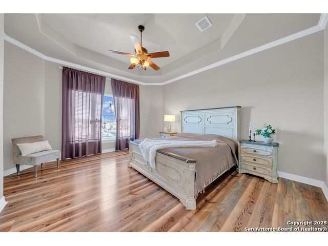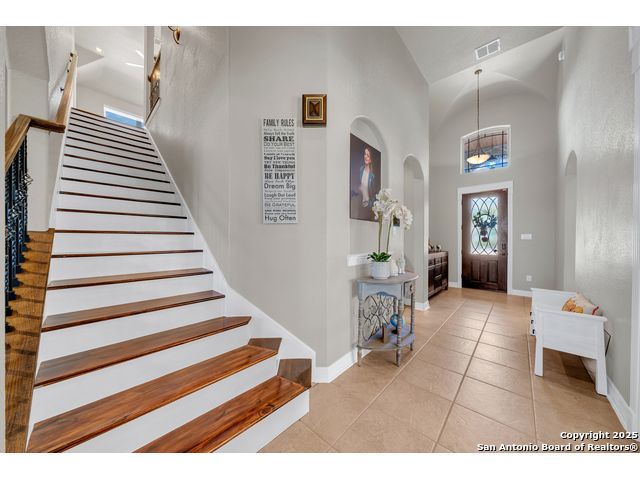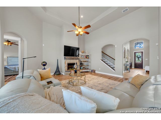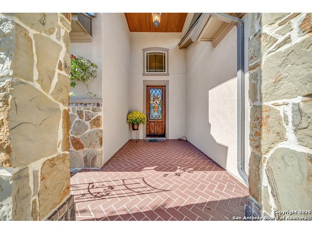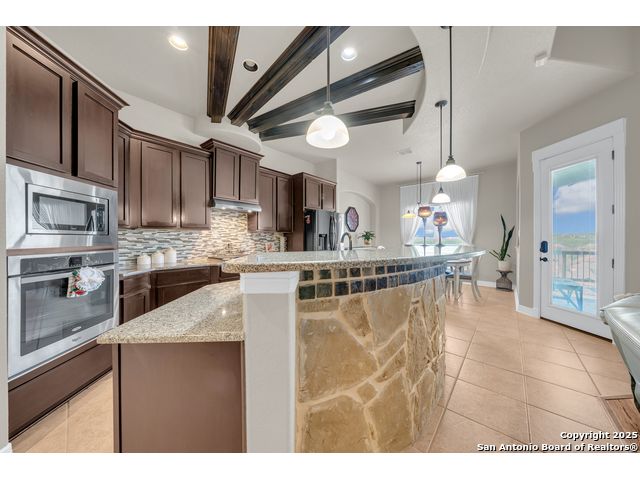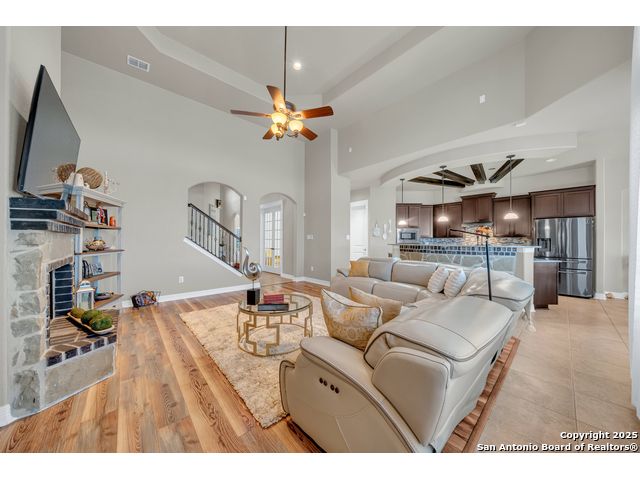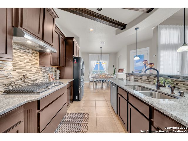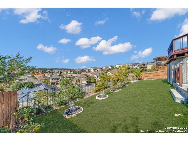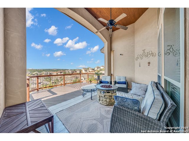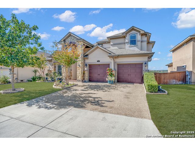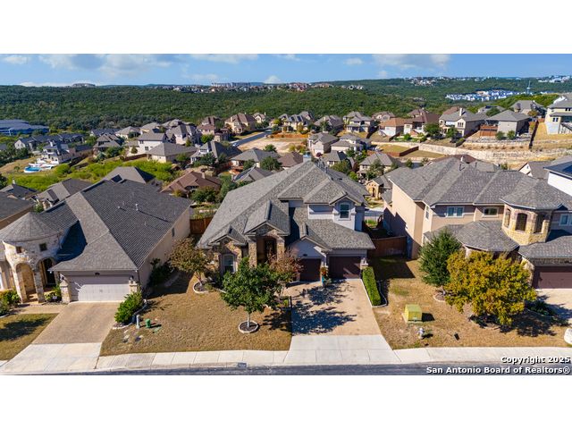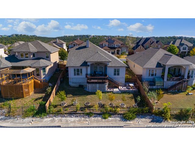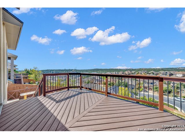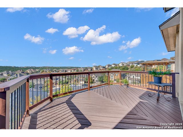 Perched on a hilltop with breathtaking city views, this elegant home perfectly blends luxury and comfort. Just steps from Crownridge Canyon Natural Area trails, it offers an open floor plan with soaring ceilings, graceful archways, granite countertops, stainless steel appliances, and a butler's pantry, laminate flooring throughout the house. The primary suite and a private mother-in-law suite are both conveniently located on the main floor, offering exceptional comfort and flexibility. A spacious covered patio and extended deck are perfect for entertaining or relaxing in style. Enjoy easy access to I-10 and 1604, minutes from The Shops at La Cantera, The Rim, Six Flags, fine dining and endless entertainment. Zoned to top-rated schools, it offers an exceptional lifestyle in one of San Antonio's most desirable communities.