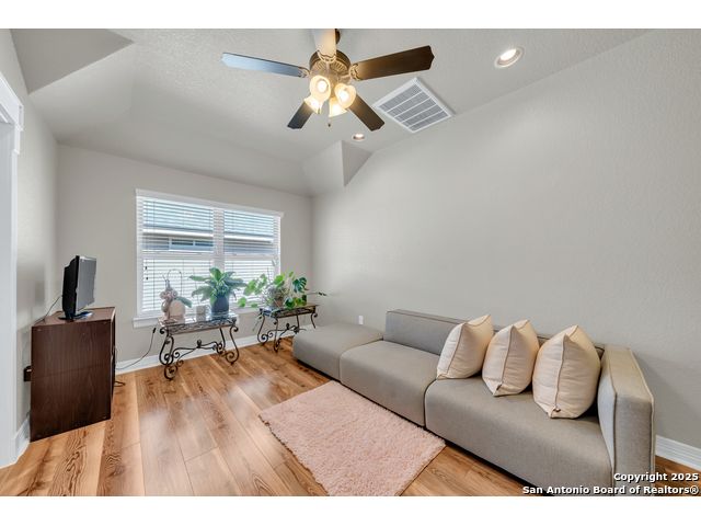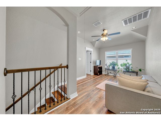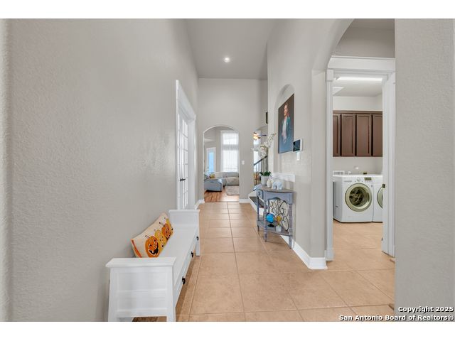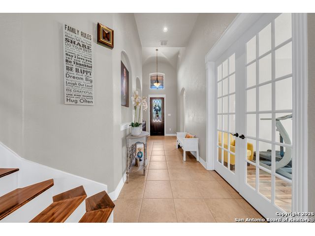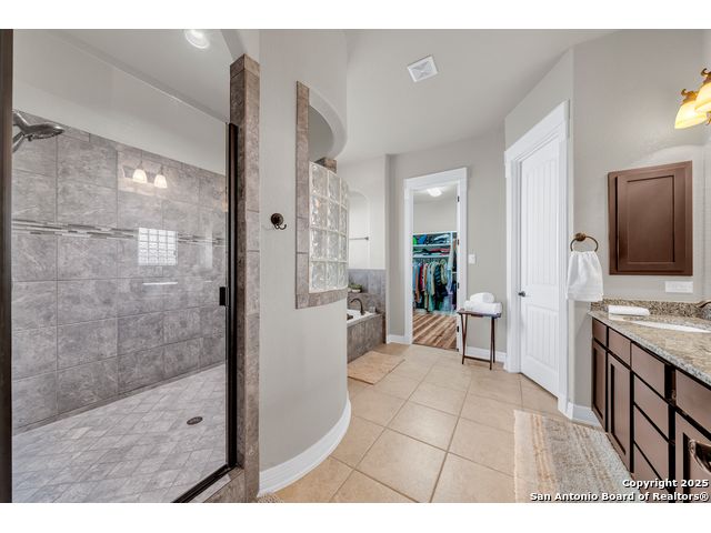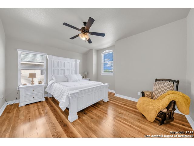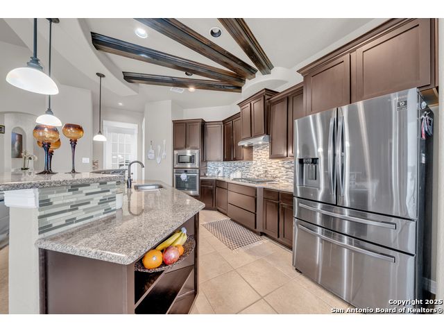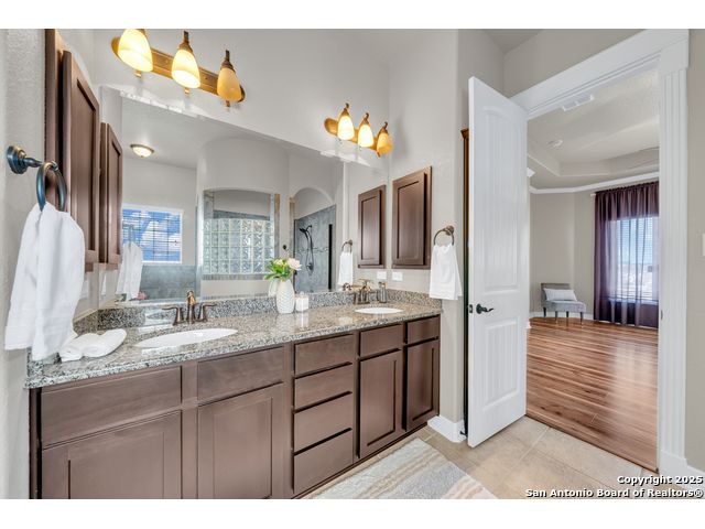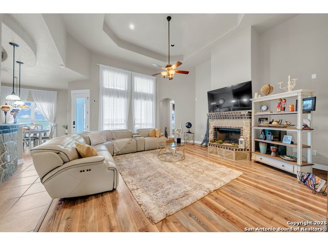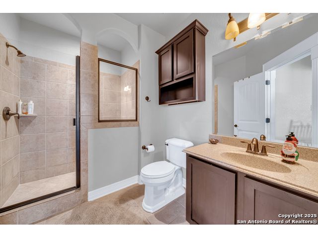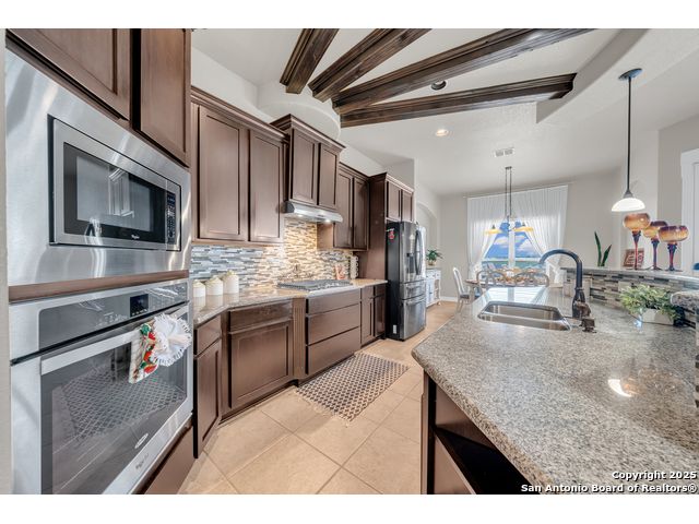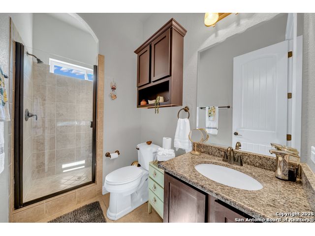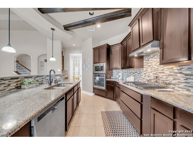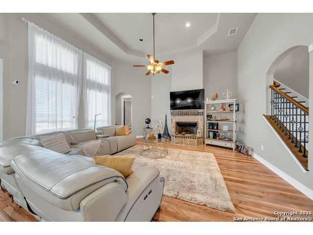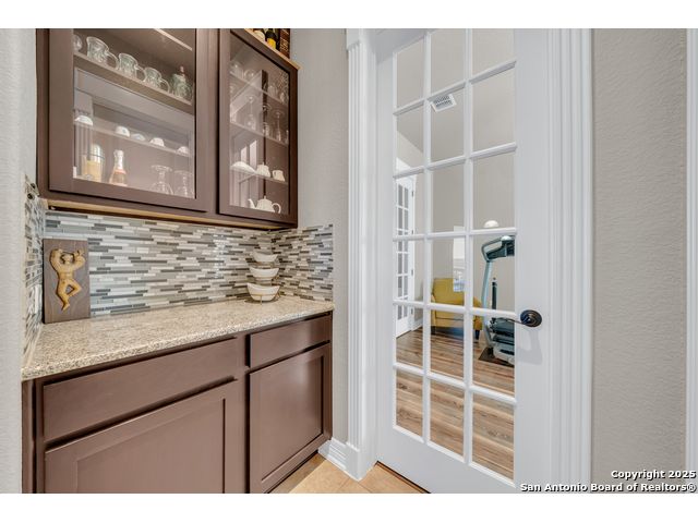 Perched on a hilltop with breathtaking city views, this elegant home perfectly blends luxury and comfort. Just steps from Crownridge Canyon Natural Area trails, it offers an open floor plan with soaring ceilings, graceful archways, granite countertops, stainless steel appliances, and a butler's pantry, laminate flooring throughout the house. The primary suite and a private mother-in-law suite are both conveniently located on the main floor, offering exceptional comfort and flexibility. A spacious covered patio and extended deck are perfect for entertaining or relaxing in style. Enjoy easy access to I-10 and 1604, minutes from The Shops at La Cantera, The Rim, Six Flags, fine dining and endless entertainment. Zoned to top-rated schools, it offers an exceptional lifestyle in one of San Antonio's most desirable communities.
