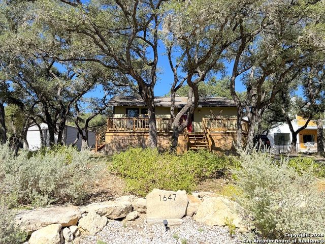 Welcome to 1647 Westview Court Dr. in Canyon Lake Tx! This adorable 3/2 is absolutely TURNKEY! With great decor and furnishings included! This home has been completely updated with new wiring, plumbing, sheetrock, quartz countertops, soft close cabinets, luxury vinyl plank flooring, and so much more! Situated on a tree covered DOUBLE LOT for extra space that is made in the shade! It includes a huge 24x36 metal building perfect for storing your boat, vehicles, and whatever else you can fit inside. Enjoy relaxing on the big shaded front deck or gathering on the large covered back deck. There is a 2 bay shed with an attached carport for extra storage as well. Inside you will find an immaculate and cozy home perfect for weekend getaways or your permanent abode. Just 1 mile from Comal Park, Boat Ramp 5, and the neighborhood amenities. Canyon Lake Forest is a quiet architecturally controlled neighborhood with a pool, clubhouse, tennis and pickleball courts, a playground and plenty of pic nic tables and bbq pits all with a view of the beautifuol blue waters of Canyon Lake. Come out and take a look today!!