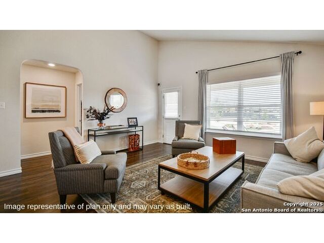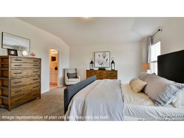 Welcome to The Walsh, a stunning two-story home located at Riverstone at Westpointe in San Antonio, TX. This floor plan offers 4 classic exteriors, a 2-car garage, and a full yard landscaping and irrigation package, ensuring that your home has instant curb appeal. A spacious covered front porch (per plan) welcomes you inside this 4 bedroom, 2.5 bathroom home where you'll find 2323 square feet of living space. Follow the entry hallway past a beautiful formal dining room and into the open kitchen featuring stainless steel appliances, quartz countertops, stylish white subway tile backsplash, spacious corner pantry, tons of cabinet space and a large eat-in breakfast bar. The kitchen opens to a spacious living room, complete with a stunning vaulted ceiling and easy-maintenance hard surface flooring. The living room extends to a lengthy covered back patio (per plan), perfect for outdoor dining or just simply keeping an eye on the kids while they play outside. The private main bedroom suite is located downstairs off the family room and offers dual vanities, a separate tub and walk-in shower, ceramic tile flooring, and a storage-friendly walk-in closet with shelving. Head upstairs to find a spacious game room or office area, a second full bath, and three large secondary bedrooms with quality carpet and walk-in closets. Additional features of The Walsh include 2-inch faux wood blinds throughout the home, luxury vinyl plank flooring in entryway, family room, kitchen, and dining room, ceramic tile at all bathrooms and utility room, and pre-plumb for water softener loop. You'll enjoy added security in your new home with our Home is Connected features. Using one central hub that talks to all the devices in your home, you can control the lights, thermostat and locks, all from your cellular device.