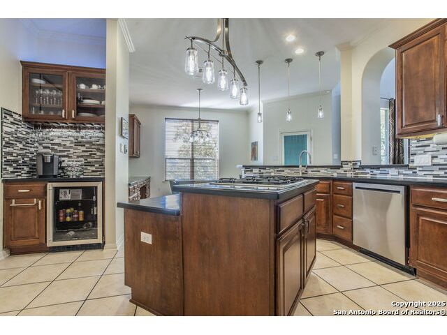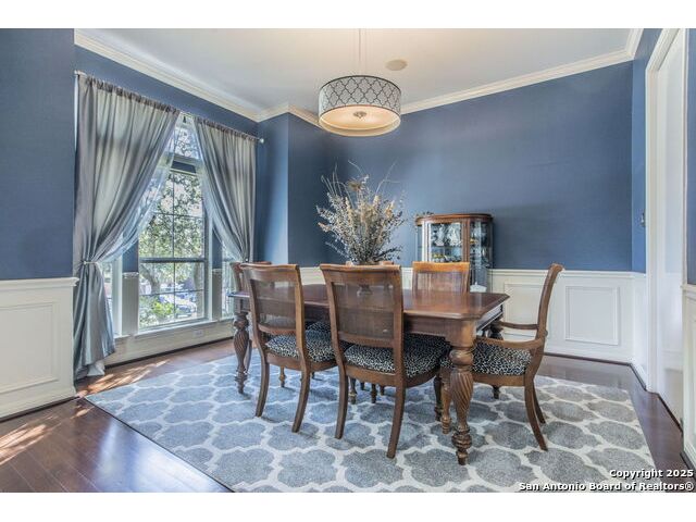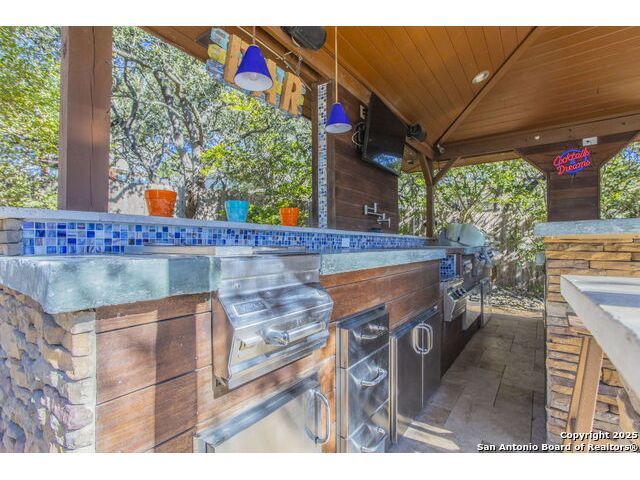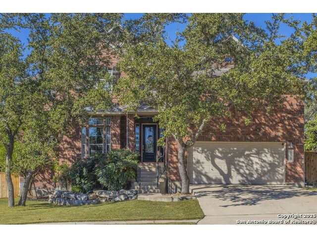 A lovely two-story home tucked away on a quiet cul-de-sac offers the perfect blend of comfort and natural beauty. It features 4 spacious bedrooms, 3.5 bathrooms, a dedicated office, and a large upstairs game room. The property offers a welcoming kitchen complete with a breakfast area, generous cabinet storage, and ample countertop space connected to a formal dining room. Additional highlights include tall ceilings, a double-sided fireplace, and a charming built-in home for your four-legged family members. Enjoy a covered patio with two ceiling fans and an attached wood deck that also provides for under-deck storage. The scenic backyard is an oasis for family and friends, with a pool, outdoor kitchen with wood-burning pizza oven, and multiple entertaining areas on a 0.4 acre lot featuring mature oak trees. The outdoor kitchen is equipped with a built-in Lion gas grill, Marvel refrigerator and kegerator, FireMagic double-sided burners, and power burner. Located in the Mountain Lodge community, residents enjoy access to top-rated schools, two pools, a playground, basketball courts, and the added benefit of no city taxes!