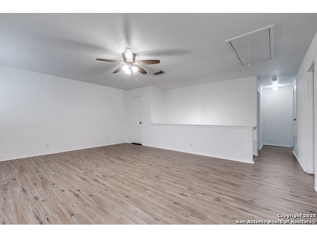 Welcome home. Well-maintained MOVE-IN READY and beautiful residence featuring an open, spacious layout filled with natural light. Enjoy comfortable living areas & generously sized bedrooms-perfect for family or guests. The bright kitchen offers ample cabinet space & a large walk-in pantry. The separate dining area and large family room boast gleaming floors and an inviting atmosphere. NO CARPET throughout! Oversized loft upstairs provides many possibilities for work, play, or relaxation. Every room is enhanced w/ceiling fans or elegant light fixtures. Outside, you'll find a large, fenced backyard w/mature trees & a spacious patio-ideal for entertaining or simply unwinding. NEAR LACKLAND AFB & SEA WORLD and shopping areas, this home combines comfort, convenience and charm in a quiet, desirable neighborhood. Roof replaced in 2025. May be better than new.