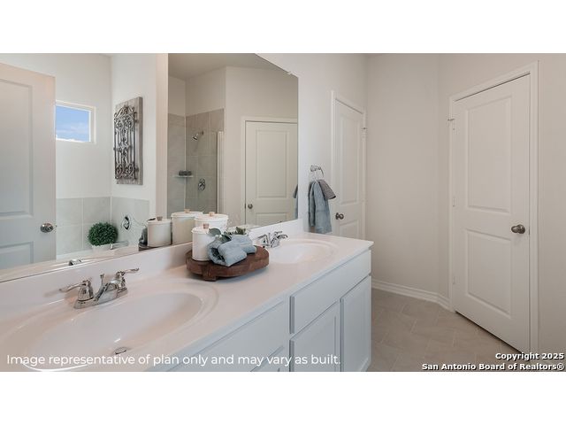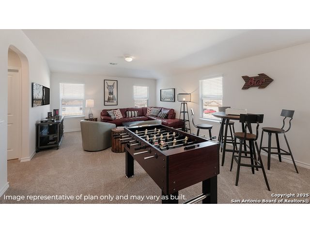 Step into The Landry, our largest two-story home at Riverstone at Westpointe in San Antonio, TX. is one of our larger floor plans. This layout features 5 bedrooms, 3.5 bathrooms and a 2-car garage. The Landry also offers 4 classic front exteriors and 2678 square feet of comfortable living. The Landry features classic designs and modern features that blend seamlessly to create the perfect space for you and your loved ones. The covered front patio (per plan) opens into a beautiful foyer and formal dining room with abundant natural light from multiple windows. The dining room leads into an open-concept kitchen with stainless steel appliances, quartz countertops, white subway tile backsplash, and an angled kitchen island that faces the spacious living room, perfect for entertaining! The private main bedroom suite is also located off the living room. Your bedroom area is spacious and you'll relax in style with large windows and quality carpet flooring. The ensuite bathroom features ceramic tile flooring, desirable double vanity sinks, separate garden tub and walk-in shower, a private water closet, and large walk-in closet with plenty of shelving. The second story of The Landry has so much to offer! A large loft area is waiting for you at the top of the stairs. Whether you use this space as a game room, office, or a media room, there is sure to be comfort. Your remaining 4 bedrooms are all located off the loft and include large windows, quality carpet flooring and spacious closets. You will also find 2 full bathrooms upstairs, complete with bath tub and shower combos and single vanity sinks. This floor plan even has a linen closet! Additional features include tall 9-foot ceilings, 2-inch faux wood blinds throughout the home, luxury vinyl plank flooring in the entry, family room, kitchen, and dining area, ceramic tile in the bathrooms and utility room, pre-plumb for water softener loop, and full yard landscaping and irrigation. You'll enjoy added security in your new home with our Home is Connected features. Using one central hub that talks to all the devices in your home, you can control the lights, thermostat and locks, all from your cellular device.