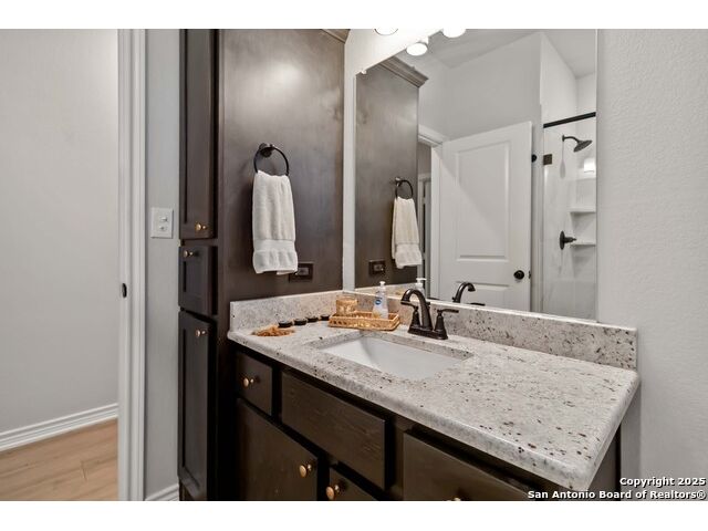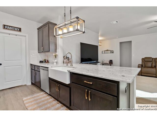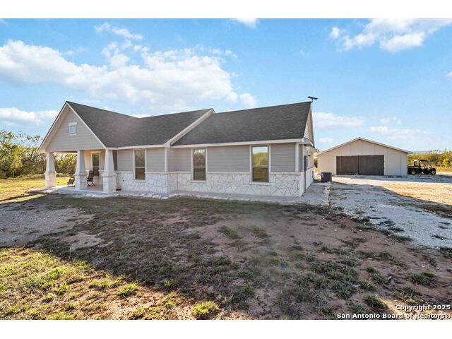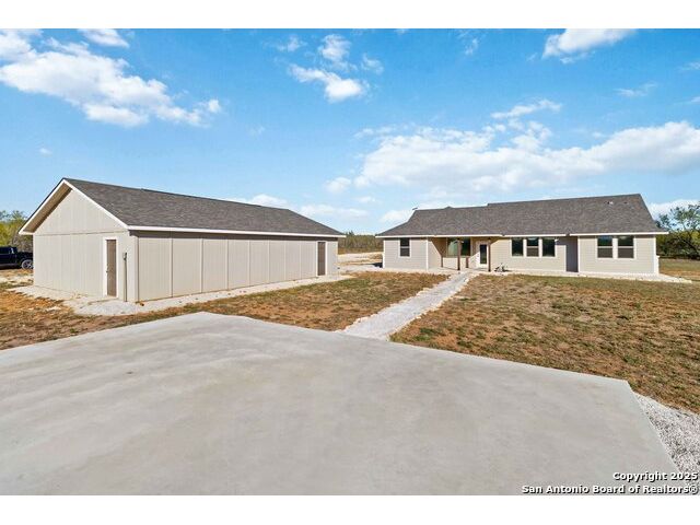 Peaceful Country Living Meets Modern Comfort - 20 Acres in Devine, Texas. Escape the city hustle and discover your own slice of Texas paradise just outside San Antonio, in the charming town of Devine. This electronically gated, fully fenced, agriculture-exempt 20-acre property offers the perfect balance of privacy, practicality, and possibility. As you drive through the electric gate and down the 400-yard private driveway, you'll immediately feel the serenity of country living take over. The centerpiece of this property is a beautifully designed 1,862 sq. ft. home, perfectly complemented by a 1,200 sq. ft. detached garage/workshop-and a 900 sq. ft. slab with electric already in place, ready for your vision. Whether you dream of a guest house, casita, or outdoor kitchen, this foundation is ready to bring your ideas to life. Step inside and you'll find a smart, open-concept layout that's both inviting and functional. The home offers 4 bedrooms and 2 full baths, with wide-plank luxury wood laminate flooring running throughout. Natural light fills the bright living areas, where open sightlines make conversation and connection effortless. The chef's kitchen is a true highlight-featuring granite countertops, 42" custom cabinetry, a central work island, and a breakfast bar peninsula. It opens seamlessly to the cozy family room and breakfast nook, making it ideal for both everyday living and entertaining. Your private primary retreat is tucked away from the rest of the home, complete with an ensuite bath featuring a granite vanity and a step-in shower with a seamless glass door. One of the secondary bedrooms is privately situated, making it perfect for a home office or study. Two additional bedrooms share a beautifully finished guest bath. Outside is where the magic truly happens. Enjoy 20 acres of Texas beauty, partially cleared around the home yet still offering stunning tree-studded landscapes with walking and ATV trails winding through the property. Spend your days exploring, relaxing, or practicing your aim at your private shooting range. Whether you're looking for a peaceful retreat, a place to hunt, or a property that offers endless outdoor adventures-this is a true hunter's paradise. This rare find offers space, comfort, and opportunity-all just minutes from San Antonio. Don't miss your chance to own a one-of-a-kind country estate that perfectly blends rural charm with modern amenities.