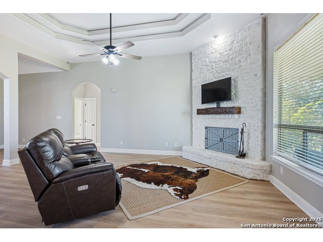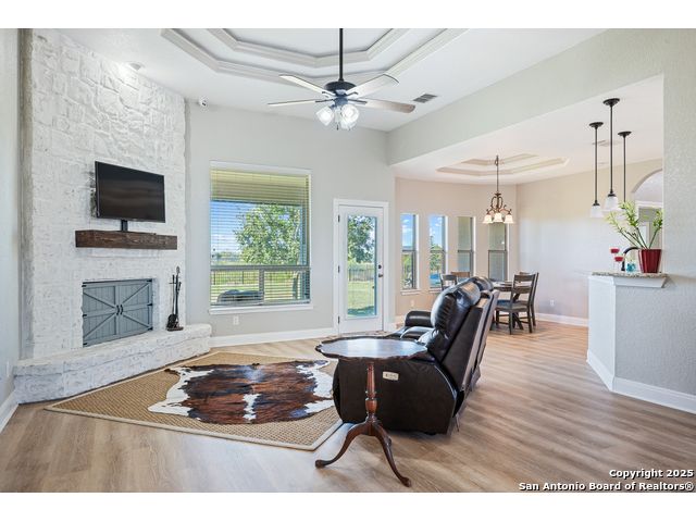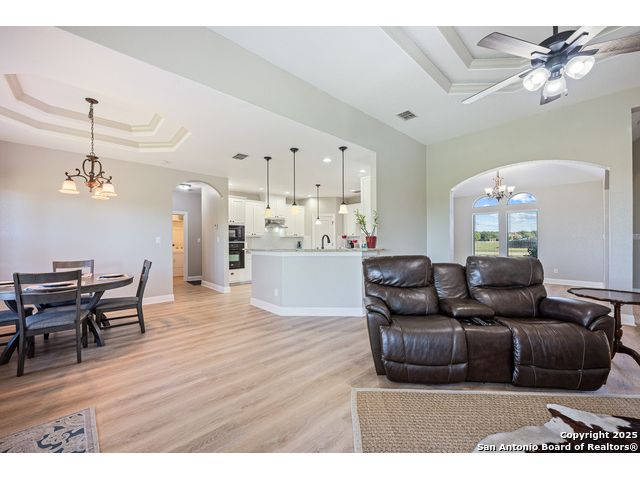 16026 Lake Shore Dr, Lytle, TX - Quiet spot on 0.693 acre that backs to a private lake, with a comfortable single-story, 2,152 sq ft layout and no carpet anywhere. Inside you'll find a light, open living room with tray ceilings and a fireplace, plus a clean, white kitchen with granite, an island, plenty of cabinets, and built-in oven and microwave. The split plan gives you 3 bedrooms and 2 baths; the owner's suite has a soaking tub, separate shower, and good storage. There's an oversized 2-car garage with extra storage and a handy bonus office/flex room off the garage-nice for work, hobbies, or a small gym. Out back, the yard feels private and usable for gardens, a fire pit, or just sitting outside. The property backs to a private lake; water levels change with the weather-during dry spells it can be low or dry, and when it's up, it adds a peaceful view and extra enjoyment. Everyday basics are easily accessible, and you're about 25 miles to Downtown San Antonio along the I-35 corridor, so getting around is easy. If you've been looking for a simple, well-kept single-story with Luxury vinyl plank, storage, and some breathing room, this one's worth a look. Come walk it, see the natural light, and picture how you'd make it yours.