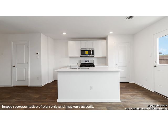 Welcome to The Davis, a two-story home located at Lucero in San Antonio, TX. This floor plan offers 2 classic exteriors and 2-car garage. Inside this 3 bedroom, 2.5 bathroom home, you'll find 1489 square feet of living space. The entry opens to a gourmet kitchen before flowing into the dining and family room with an open floorplan concept. The kitchen includes quartz counter tops, quality cabinetry, stainless steel appliances, large breakfast island, and pantry. Head up the stairs to find the main bedroom suite, all secondary bedrooms, the laundry room, and a full bath. The Davis layout is perfect if you love entertaining downstairs and relaxing upstairs. The private main bedroom features an attractive ensuite with quality cabinetry. A spacious tiled walk-in shower and large walk-in closet provide all the space and convenience you need. Additional features of The Davis floor plan include sheet vinyl flooring in entry, living room, and all wet areas, quartz counter tops in all bathrooms and HOME IS CONNECTED base package. Using one central hub that talks to all the devices in your home, you can control the lights, thermostat and locks, all from your cellular device.