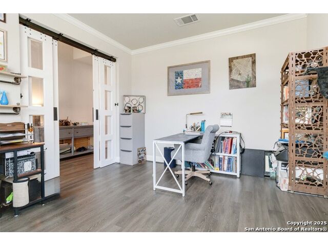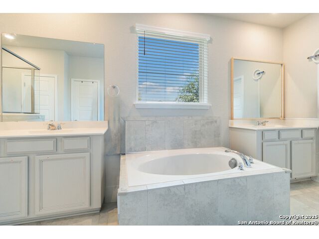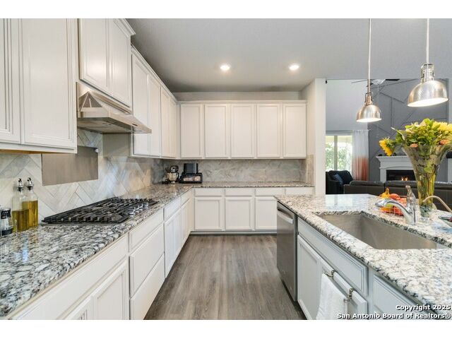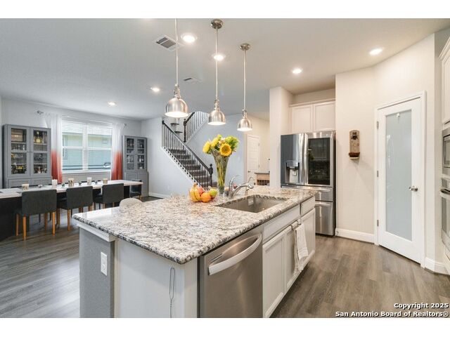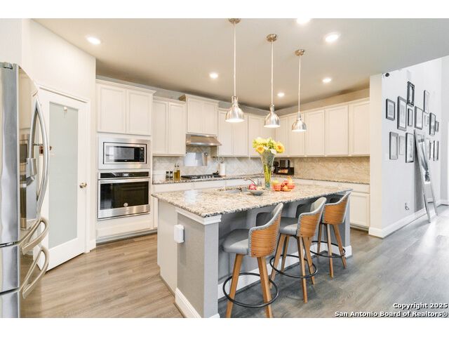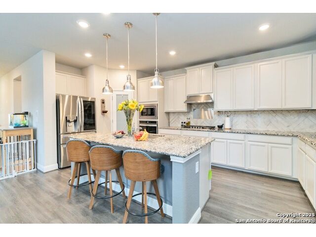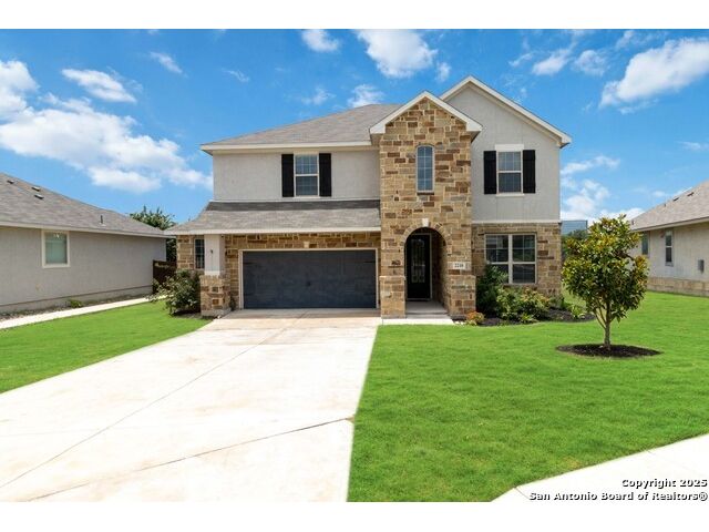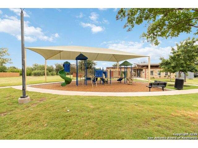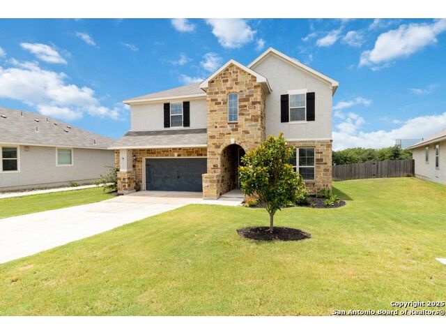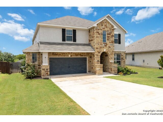 Welcome Home to Comfort, Space, and Style in Sienna! Nestled at the end of a peaceful cul-de-sac, this stunning two-story home offers the perfect blend of modern elegance and everyday functionality. Built in 2019 and backing onto a serene greenbelt, this 5-bedroom, 4-bath residence spans 3,484 square feet of beautifully designed living space in the highly sought-after NEISD school district, with excellent charter and private schools nearby. Conveniently located with instant access to Highways 281 and 1604, you'll enjoy easy commutes to shopping, dining, and everything San Antonio has to offer. From the moment you arrive, you'll notice the meticulously maintained lawn-kept lush year-round by a built-in sprinkler system and backyard drip lines for your gardens. Step inside the grand two-story foyer, where a flexible front room awaits-perfect as a formal dining area, home office, or sitting room. The heart of the home is an expansive, open-concept living and dining area that flows seamlessly into a chef-inspired kitchen featuring rich cabinetry, a large granite island, breakfast bar, gleaming stainless-steel appliances (including a gas oven), and a reverse osmosis water filtration system. The soaring two-story living room is bathed in natural light from a wall of windows and anchored by a beautiful fireplace, creating a warm, inviting atmosphere. Your first-floor primary suite offers a private retreat with high ceilings, a spa-like ensuite featuring a garden tub, dual vanities, a separate shower, and two oversized walk-in closets. Upstairs, you'll find not one-but two additional living spaces, perfect for a game room, media room, or study area. Four spacious secondary bedrooms and two full baths provide plenty of room for guests, or hobbies. Step outside to enjoy the covered patio complete with a built-in gas line-ready for your grill or outdoor fireplace. The fenced backyard includes a handy storage shed and backs up to a tranquil greenbelt, offering added privacy. Additional features include $27K in solar panels for energy efficiency, a high-quality water softener, sturdy garage shelving with a dedicated workspace, and an oversized garage with plenty of storage. Located in the desirable Sienna neighborhood, residents enjoy access to a sparkling community pool, playground, and clubhouse-perfect for making the most of those sunny Texas days. Don't miss the chance to make this exceptional property your forever home-where comfort, convenience, and community come together beautifully.