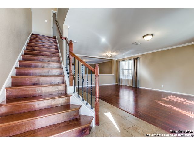 STUNNING 2 story, 2.5 bath home located in the Heart of Helotes, this BEAUTIFUL home features Controlled Access, Park/Playground Area and Sport Court. Open floor plan with updates. Granite counter tops, custom cabinets, stainless steel appliances, new dishwasher, new roof, water softener, storm doors in front & back doors, dark outside window screens to conserve energy, Laminate wood & tile floors throughout the house with exception of 2 bedrooms with new carpet. Large game room, movie room or 4th bedroom or office with walk in closet. Walk in closets throughout. Large pantry with plenty of shelves, shutters and blinds. Refrigerator in garage conveys. Newly painted large patio deck for your entertainment. Patio has celling fan. Ring door bell conveys. This Home has been professionally cleaned and is 100% MOVE-IN READY. Very close to schools, Loop 1604, FM 1560, restaurants, shopping & much more. DON'T MISS OUT! THIS GORGEOUS HOME WILL NOT LAST!