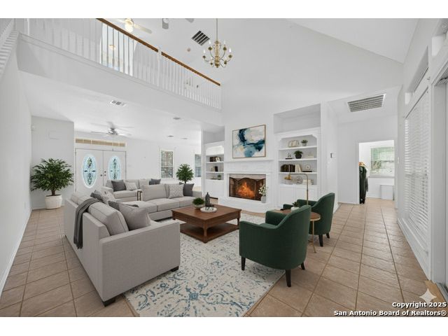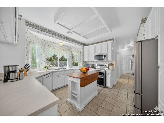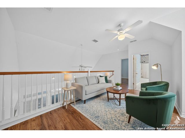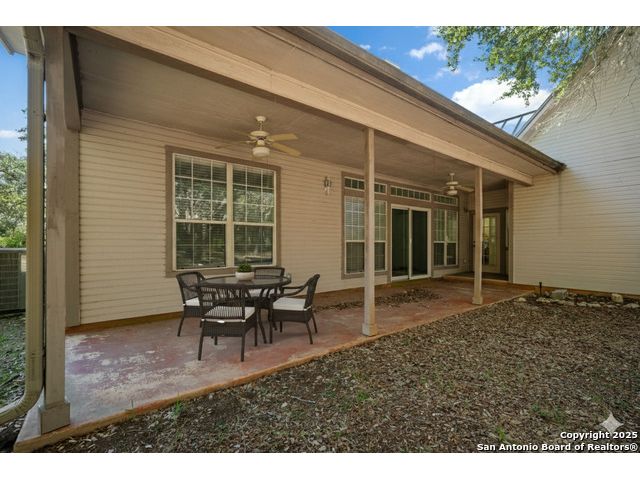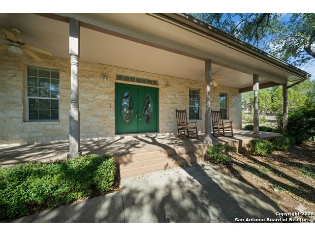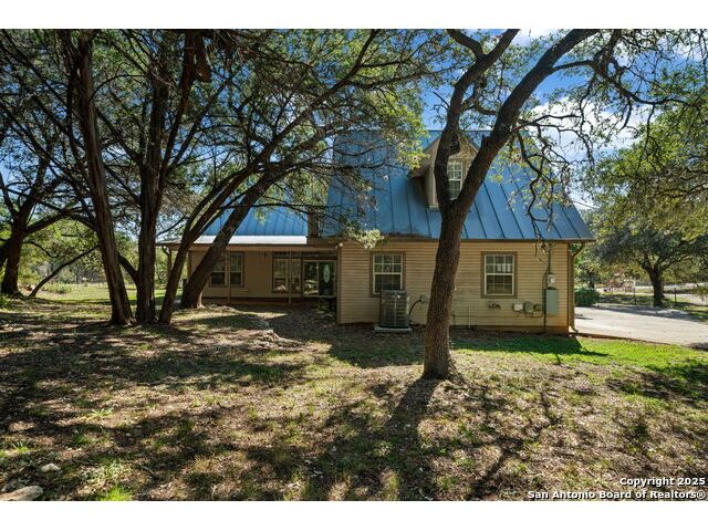 Welcome to your Hill Country retreat near Canyon Lake! This beautifully maintained 4-bedroom, 3.5-bath home sits on a fully fenced one-acre lot with a private electric gate, just one mile from the boat ramp. From the moment you arrive, you'll appreciate the circular driveway, two-car garage, and extra parking pad for guests or toys. Inside, the spacious living room features high ceilings, a cozy fireplace, and custom built-ins-perfect for displaying your favorite treasures. The kitchen offers plenty of workspace with a movable island, double ovens, microwave, dishwasher, and refrigerator included. Just off the kitchen, you'll find the laundry room with a full-size washer and dryer, water softener, and convenient powder bath next to it. The primary bedroom suite is downstairs, while upstairs you'll find two large secondary bedrooms, a shared bath, and a loft overlooking the living area-ideal for a game room or study. A separate upstairs suite with a full bath and balcony access makes a great guest retreat, home office, or space for older children. Additional highlights include new ductwork with Blue Ray light for germ control, an alarm and sprinkler system, large backyard storage shed, and an active John Wayne Service Agreement covering HVAC, plumbing, and electrical. Enjoy peaceful country living with modern comforts-just minutes from Canyon Lake, shopping, and restaurants.
