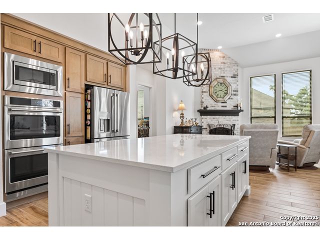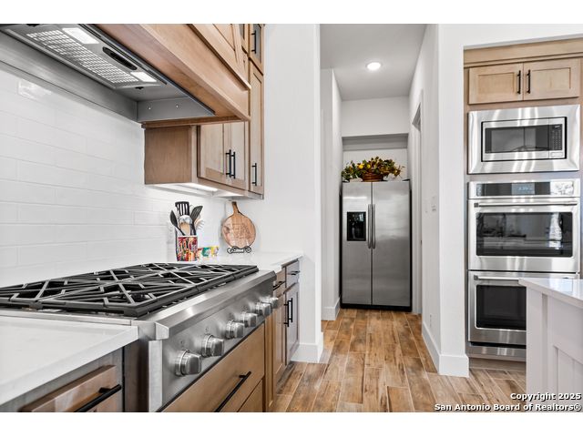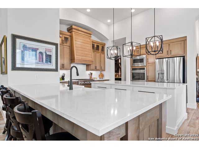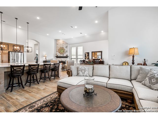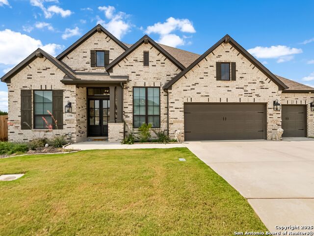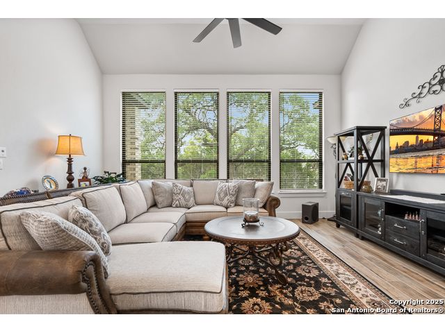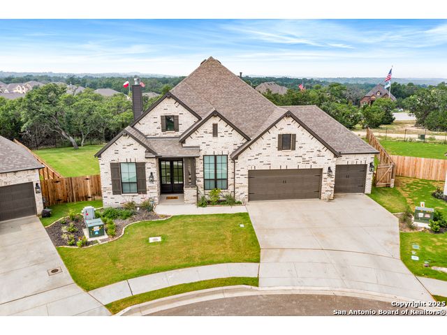 Welcome to this stunning and highly upgraded 216 Model Home Floorplan-a true showpiece in the sought-after Ventana Estates community. Enter through elegant double doors into a bright, open layout featuring high ceilings and expansive windows that flood the home with natural light. The farmhouse-style chef's kitchen is a dream come true, showcasing GE Cafe appliances, a double oven, and a spacious island perfect for entertaining. An enhanced secondary butler's pantry adds both function and flair, complete with a wine fridge, coffee service station, and abundant storage. Retreat to your private primary suite, where the spa-quality en-suite bath offers the ultimate in relaxation. Three additional bedrooms, each with their own en-suite bathrooms, provide comfort and privacy for family and guests alike. A dedicated office and a separate game/media room make this home as functional as it is beautiful. The enormous laundry and craft room delivers exceptional counter space and storage-ideal for any lifestyle. Designer upgrades throughout the home highlight its craftsmanship and attention to detail. An oversized three-car garage offers ample parking and storage. Nestled on a private cul-de-sac backing to lush greenspace, this oversized lot provides peace, privacy, and plenty of room for outdoor living. Conveniently located near shopping, dining, and all things Bulverde, this home truly has it all. Don't miss your chance to make this incredible property yours. Come see it today and fall in love!
