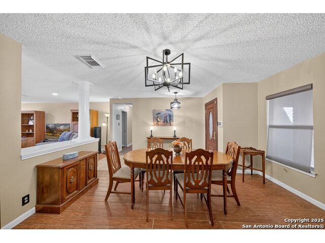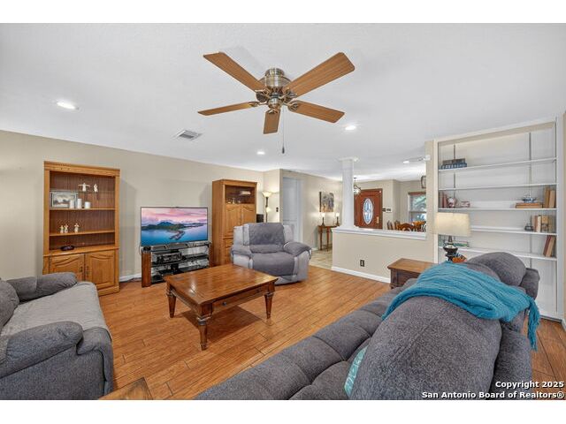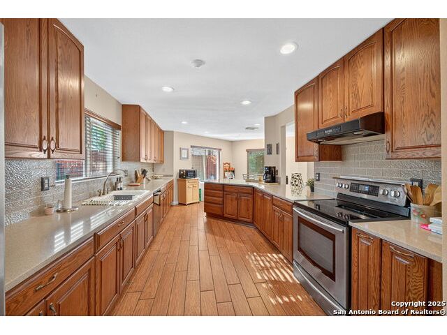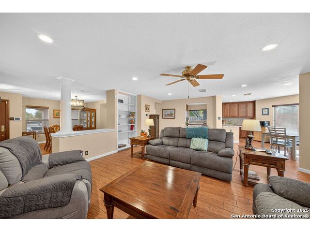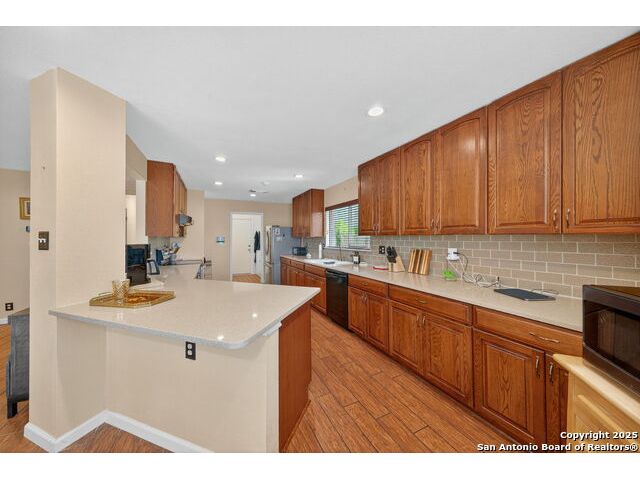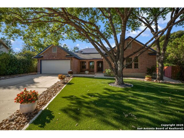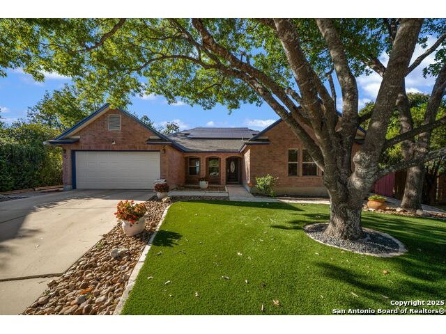 Tucked away at the end of a quiet cul-de-sac, this beautifully maintained one-story brick home offers comfort, efficiency, and privacy. The exterior features four sides of classic brick, roll-down solar shades, an 8-foot rear fence, and no rear neighbors, giving you peace and seclusion in your own backyard retreat. Step inside to find all-tile flooring throughout, perfect for easy maintenance and a modern look. The updated kitchen is a true highlight-featuring quartz countertops, soft-close drawers, roll-out shelving, and newer stainless steel appliances-making cooking and entertaining a joy. Enjoy relaxing evenings on the covered back porch or tending to your low-maintenance landscaping with artificial turf in both the front and back yards. The storage shed provides extra space for tools or hobbies, while solar panels help keep energy costs low. Located in the highly sought-after Northside Independent School District, this home combines thoughtful updates, energy efficiency, and a convenient location-ready for you to move right in!