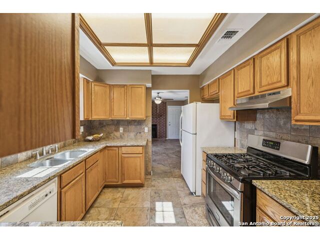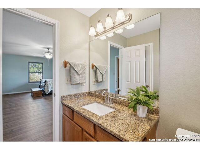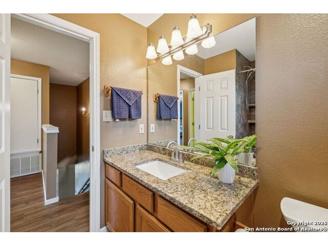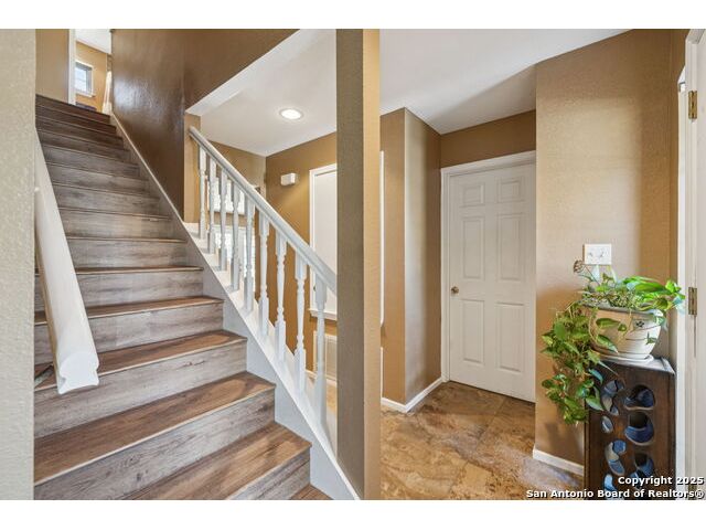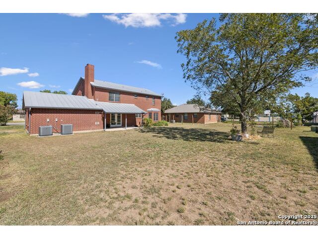 Beautifully renovated and move-in ready, this spacious 3-bedroom, 2.5-bath home offers approximately 2,300 sq. ft. of living space on a 0.28-acre lot in the heart of Castroville, Texas. With over $200,000 in recent upgrades, this home delivers comfort, efficiency, and lasting quality. Improvements include ***new flooring throughout, fresh interior paint, energy-efficient double-pane gas filled windows, a durable metal roof, and a leveled foundation*** providing both style and peace of mind. The flexible floor plan includes two generous living areas, perfect for entertaining or relaxing with family and a BONUS ROOM, perfect for an office. The family room features a beautiful brick, wood-burning fireplace with a swing-arm cooking hinge, ideal for cozy evenings or rustic-style meals. The kitchen offers gas cooking, abundant counter space, and ample cabinetry, and comes fully equipped with all appliances, including the refrigerator, dishwasher, washer, and dryer. A downstairs bedroom provides versatility and can easily be used as a guest suite, home office, or hobby space. Upstairs, the primary suite features two walk-in closets and a private bath, creating a spacious retreat. Secondary bedrooms are equally comfortable with excellent storage and natural light. Outside, enjoy a large backyard that's perfect for entertaining, gardening, or creating your dream outdoor space. Mature trees and open lawn areas make this backyard ideal for gatherings or quiet evenings under the stars. Additional highlights include a two-car garage, city utilities, and natural gas service for cooking and water heating. Conveniently located near Highway 90, this upgraded home is close to shopping, dining, schools, and Castroville's historic downtown. Only 20 minutes from Lackland Air Force Base and within easy reach of San Antonio, this property offers the perfect balance of small-town charm and modern convenience. Whether you're looking for a family home, a move-in ready property near San Antonio, or a peaceful retreat with high-end upgrades, this Castroville home truly has it all.