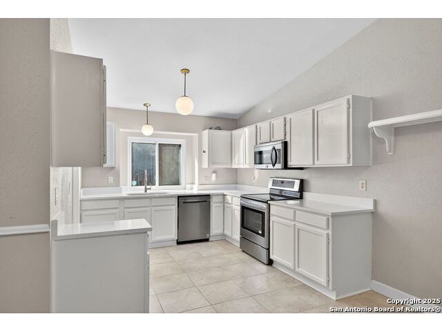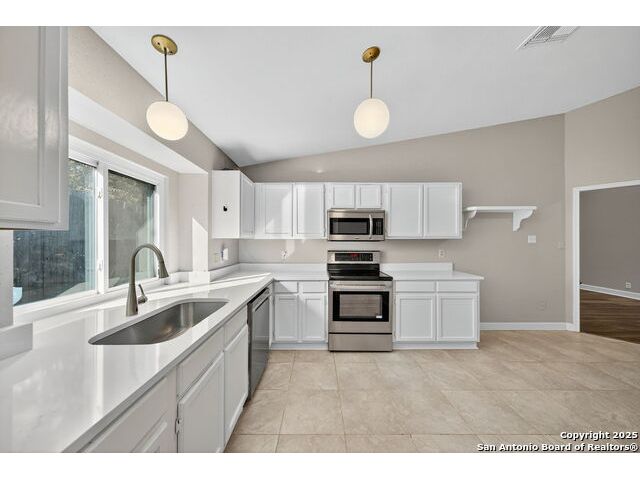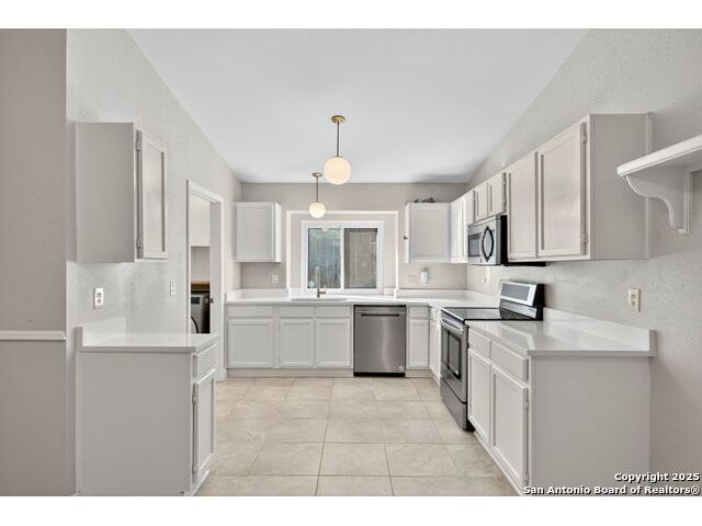Encino Park - Now YOU can live in this Highly Sought-after Neighborhood! Great One Story home, 3 bed/2 bath, 2 Dining Areas, Spacious Living Area features a Vaulted Ceiling & Brick Hearth FP. Bright Kitchen has Quartz Countertops, Farmhouse Sink, Stainless Appl, Smooth Cooktop & Walk-in Pantry. Primary Bath updated w Large Walk-in Shower. Built-in Desks in secondary bdrms. LVP Flooring in living areas & sec bdrms. Highly rated NEISD Schools! Amenities - Pool, Tennis, Park, Playground, Basketball & more!
