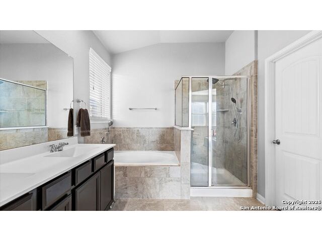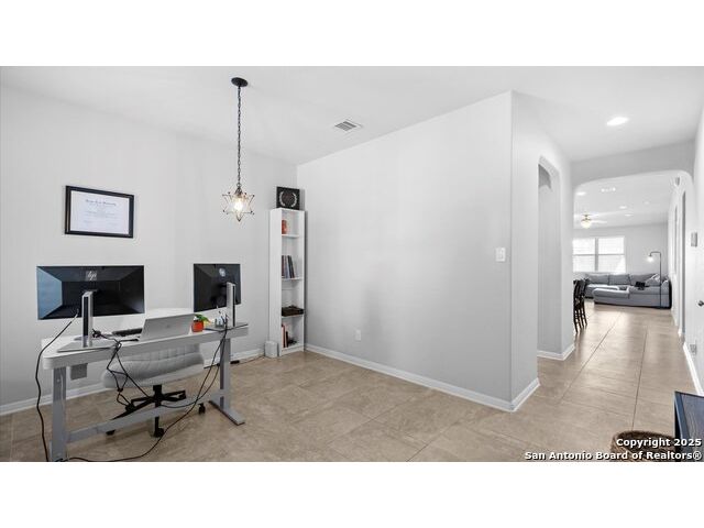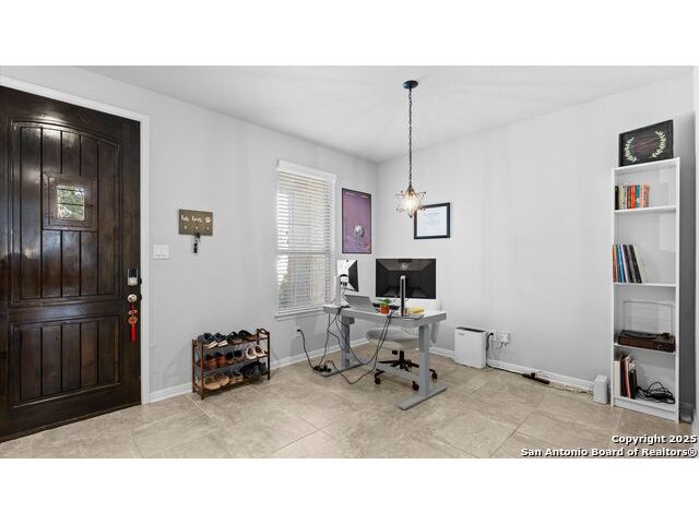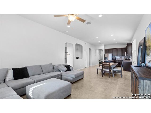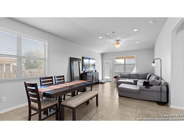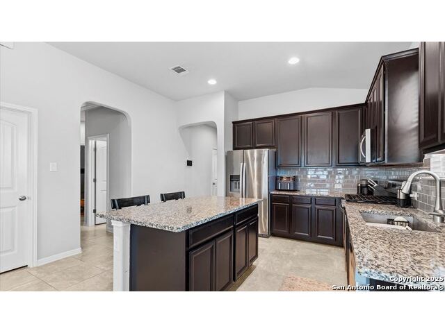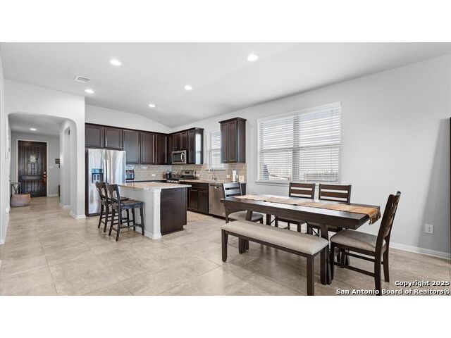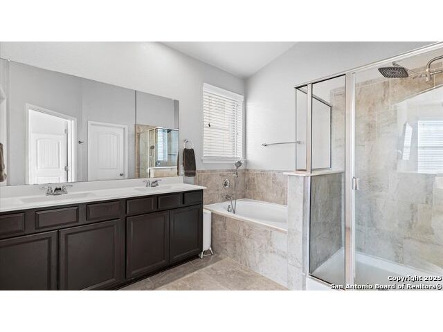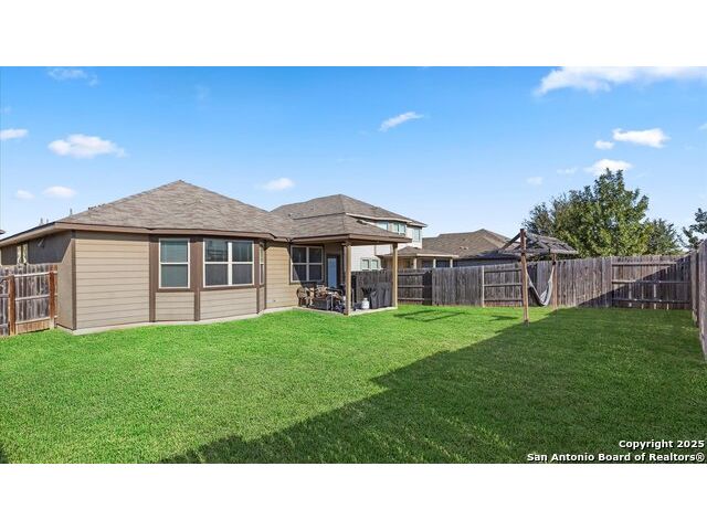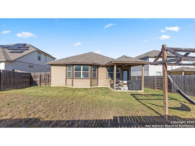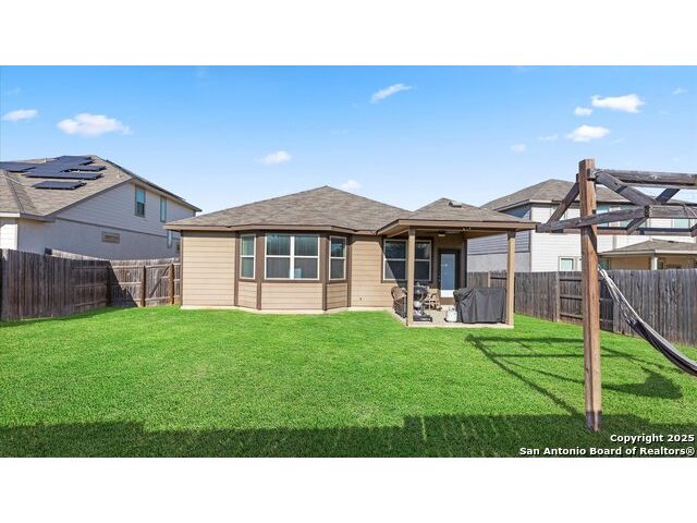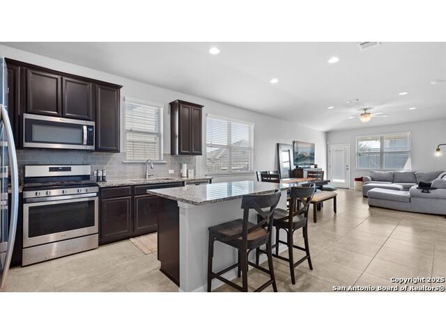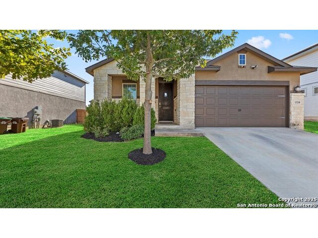 Stunning one-story home featuring a beautiful stone and stucco exterior in a highly sought-after area! Inside, you'll find a modern open-concept floor plan filled with natural light. The chef's kitchen showcases dark cabinetry, granite countertops, gas cooking, stainless steel appliances, ceramic backsplash, and an island-perfect for entertaining. The spacious living and dining areas flow seamlessly with elegant ceramic tile flooring in common areas, creating a clean and contemporary feel. The owner's suite offers a relaxing retreat with bay window and double doors leading to primary bath with large garden tub, and a separate walk-in shower. Office/flex space can serve as dinning or second living. Located within top-rated NISD schools and just minutes from Alamo Ranch shopping, dining, and entertainment, this exceptional home perfectly blends comfort, style, and convenience. Schedule your tour today!