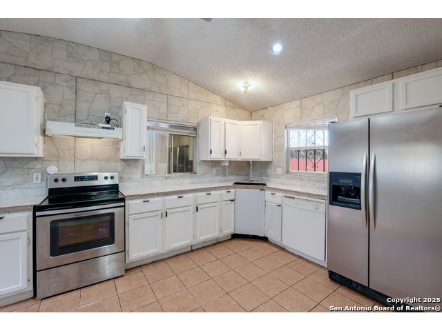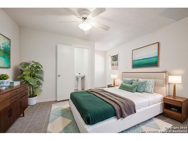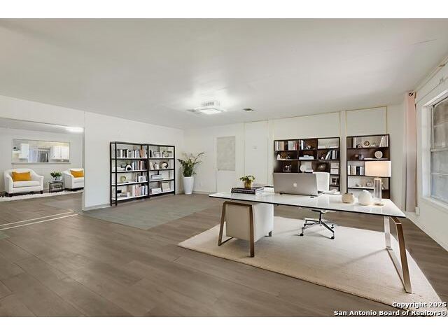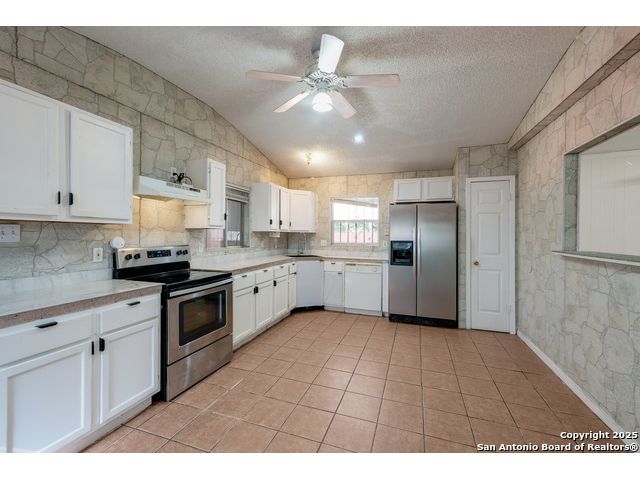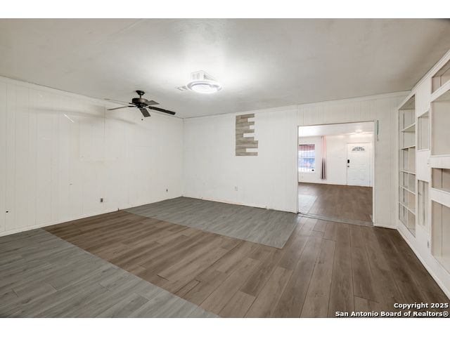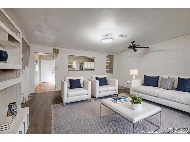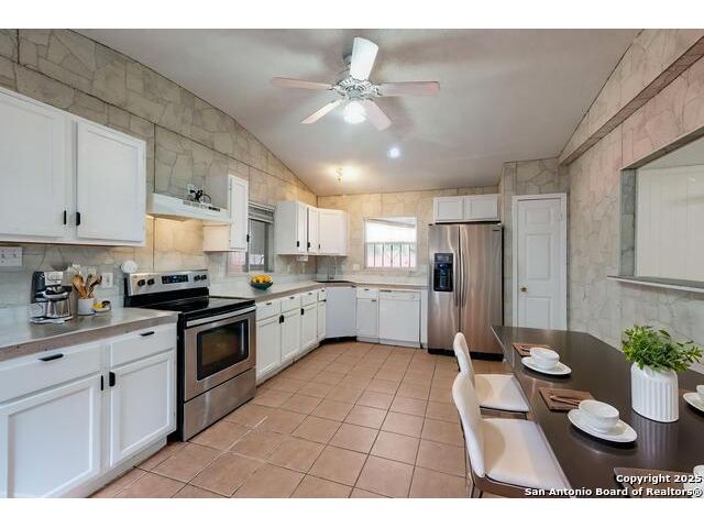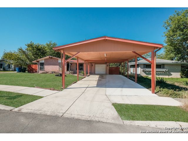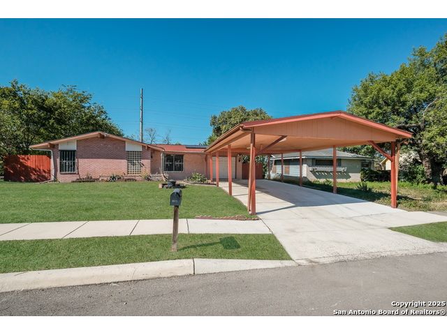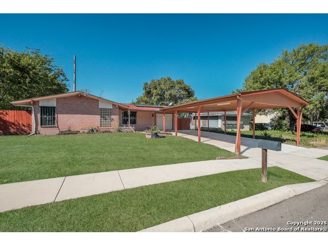 Great investment or fixer-upper opportunity! 3-bedroom, 2-full bath, 2-powder room home with an open-concept layout and multiple living areas, including a flex space perfect for an office or formal dining. Kitchen features stainless steel appliances and a refrigerator that will stay. The water heater was replaced in 2014.One-car garage with an extended covered driveway provides plenty of parking for multiple vehicles. Seller has indicated the oversized lot has been platted for the backyard area, allowing a future owner the potential to build an additional home or structure of approximately 1,035 sq. ft. (documentation pending; buyer to verify). Solar panels are fully paid off, offering energy savings from day one. SELLING AS IS, foundation and other repairs needed. Prime location near Lackland AFB, highways, schools, and shops. Seller is motivated and ready for a quick close.