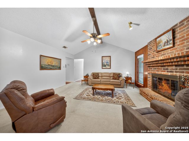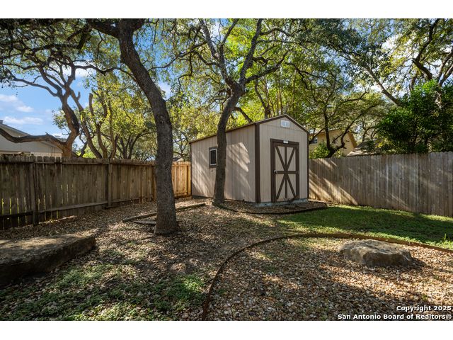Large irregular treed lot - Oversized swing in garage w work area or storage - Formal living at entry could be a study - Huge living room was used as a large living/dining combination w high beamed ceiling, brick fireplace w gas logs - Large storage building in the back corner of the lot - Roof 5 years - Electrical updates 5 years ago - AC Compressor 2025 - Washer, dryer & Refrigerator included - Voluntary HOA - Just down from McAllister Park w miles & miles of walking trails, playgrounds, baseball & soccer fields - Nearby shopping and restraunts - Must see!