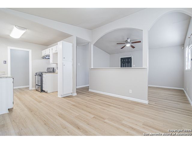 Owner finance available! 20K down, 10percent interest on a 30 yr loan. Welcome to this beautifully renovated 3-bedroom, 1-bath home that combines modern updates with timeless charm. Step inside to discover brand new vinyl flooring throughout and soaring high ceilings that create an open, inviting atmosphere. The freshly painted interior enhances the home's bright and airy feel, while the stunning kitchen backsplash adds a touch of elegance and sophistication. The kitchen also features modern appliances that convey with the sale, making this home truly move-in ready. Outside, the property sits on an expansive lot-nearly a quarter of an acre-offering ample space for outdoor entertaining, gardening, or future expansion. The semi-circular driveway provides convenient and generous parking, ideal for homeowners with multiple vehicles. This fully refreshed property is ready to welcome its next owner to comfort, style, and functionality.