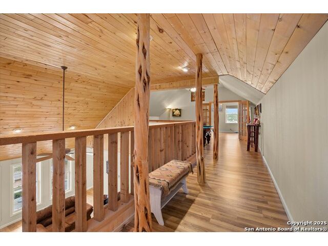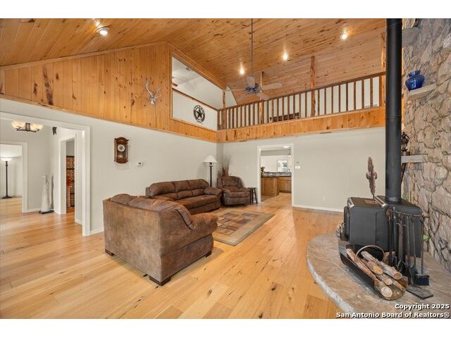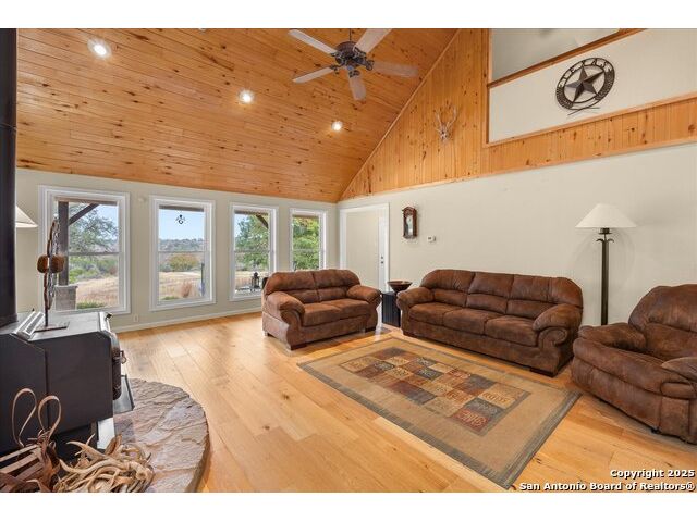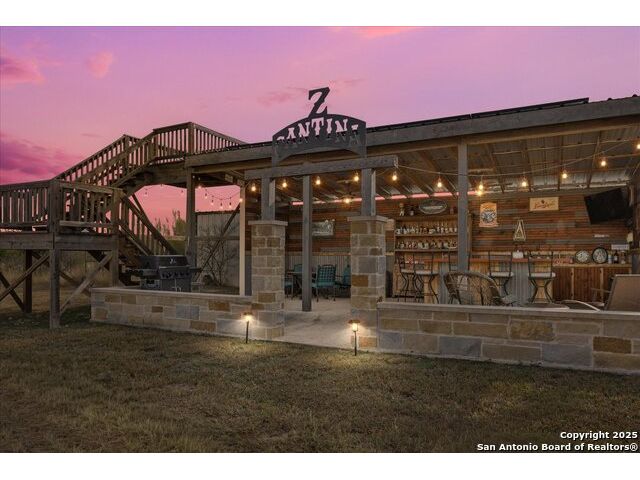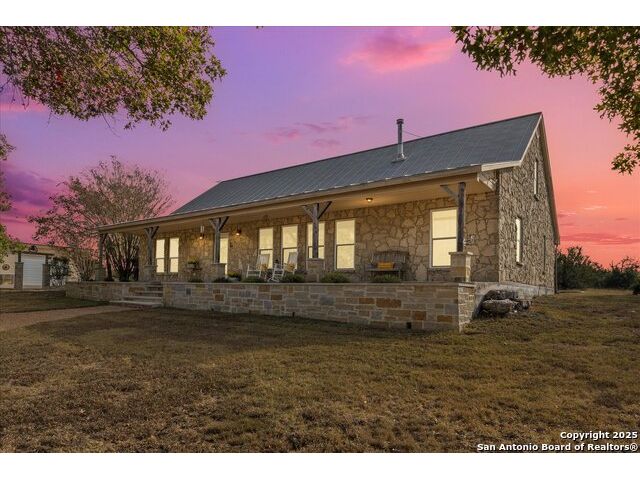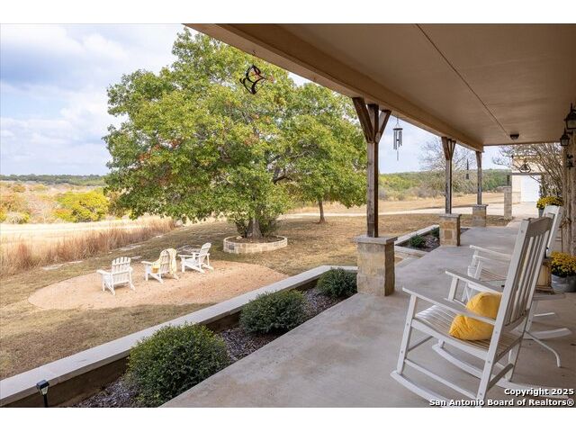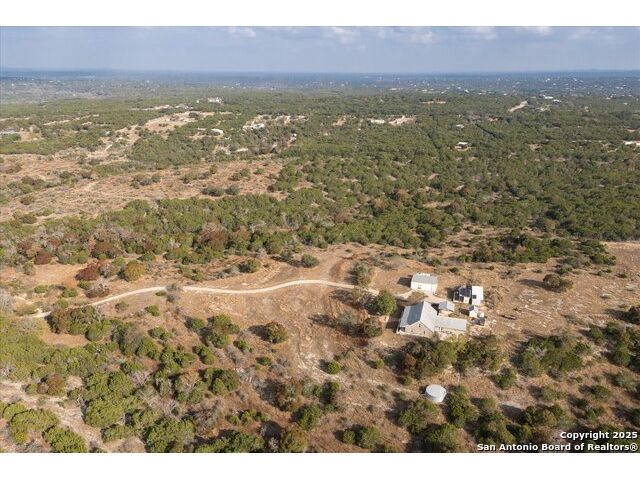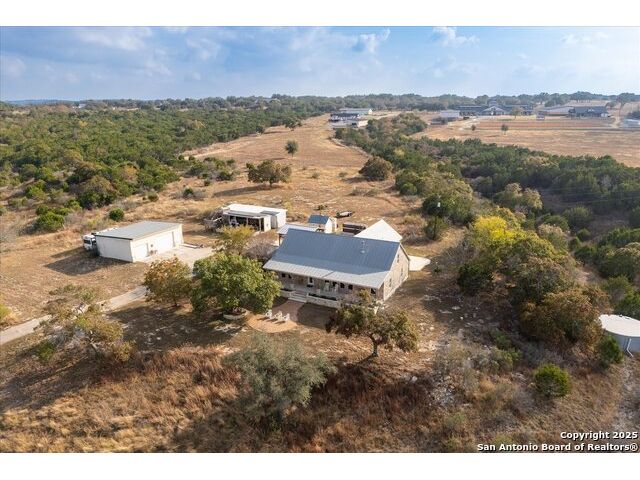 Where Nature Meets Legacy Living ~ A privately gated half-mile driveway winds through this 46 rolling acre property to reveal a rare sanctuary of privacy, comfort, and sweeping Hill Country views located across from the north gate of Cordillera Ranch. This recently remodeled residence offers nearly 4400 square feet of refined living space and lies on top of a crescent that shows off miles in the distance with a wide angle 180 degree view from the 60 foot Pinehurst-style Porch. This home features 2 spacious living areas and at its heart the Great Room rises with a two-story rock fireplace Wall, crowned by pine wood ceilings, where a wood-burning stove glows warmly creating a unmistakable feel of a true mountain retreat. A Billiards room upstairs also shows off the pine wood ceilings overlooking the loft area. New Wide plank Wood floors throughout the home help to contribute to the warmth and create a flow for the 4 Bedrooms with 4 full baths being offered in this split-designed home to allow ample space for family members to enjoy the warmth of this home while serving as a welcoming refuge for family and friends. The Kitchen Hub is located between both living areas and has been updated to showcase beautifully arranged cabinets with a gas cook top and a RO water system for gourmet cooking. New Windows were installed in 2024 which give the home wonderful natural light throughout and bring peaceful outdoor views inside. For your enjoyment, outdoor living transforms the estate into a private retreat while the front porch offers endless vistas and the basketball court turned Cantina sets the stage for gatherings. A meditation/yoga deck, along with mutliple patios, showcase the expansive views of the property, which during sunsets can offer moments of reflection and allow the soul to rest. Wellness and recreation abound with a 17 foot swim spa for year round exercise and stargazing. There is a 20,000 gallon rainwater collection system, well water backup, and solar panels where sustainability meets independence. Wildlife roams freely as the property carries a Wildlife Exemption that preserves its natural character. There are 2 stalls set up inside a pole barn/workshop behind the cantina with pipe fencing for horses or animals to be housed. The over-sized detached 3-car garage has much storage inside with an electric car charging station included. An additional 54 Acres are available for those who wish to expand their legacy estate. This is more than a residence ~ its a refuge for the spirit, a beautiful sanctuary for family, and a true HILL COUNTRY dream realized.