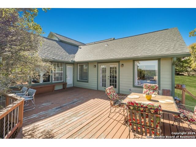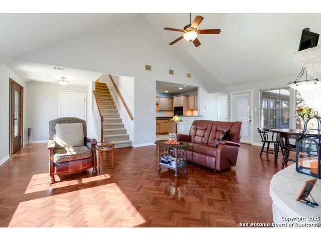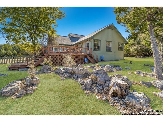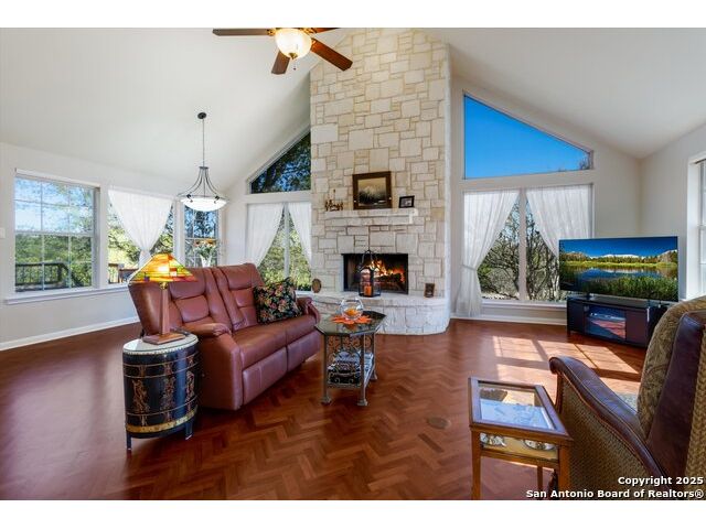 Escape to your own slice of Texas Hill Country paradise on four sprawling acres of natural beauty. This stunning three-bedroom, two-bathroom home seamlessly blends rustic charm with modern comfort across 2,100 square feet of thoughtfully designed living space. The heart of this home features an open floor plan adorned with rich wood floors that flow throughout the main living areas. Oversized windows frame breathtaking views of the surrounding landscape, while a soaring stone fireplace creates the perfect gathering spot for cozy evenings. The generous primary bedroom includes a walk-in closet so spacious you might consider charging it rent. Step outside to discover your personal orchard featuring mature fruit trees, including productive pear trees that provide seasonal bounty. The property offers direct access to the pristine Guadalupe River, perfect for fishing, kayaking, or simply enjoying peaceful waterfront moments. Adventure seekers will appreciate being just minutes from the fascinating Cave Without A Name, a natural wonder that draws visitors from across the region. Practical features include an oversized garage paired with an air-conditioned workshop, ideal for hobbies, storage, or that ambitious project you've been planning. The property benefits from highly regarded Boerne school district enrollment and convenient access to downtown Boerne's charming shops, restaurants, and community events. This rare combination of acreage, river access, and proximity to both natural attractions and town amenities creates an exceptional opportunity for those seeking the perfect balance of country living and modern convenience in one of Texas's most desirable locations.