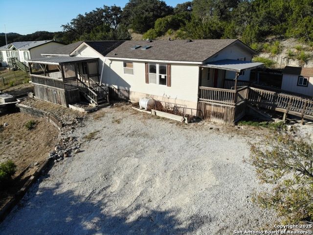 *MEDINA LAKE VIEWS - PRICED TO SELL* HUGE OPPORTUNITY, b/c it's a HUGE 3 bed 2 bath - you get it. This is a FULL Gut Out in need of restoration. GREAT STARTER PROJECT! Now is your opportunity for Medina Lake views from your front door. Manufactured Double-wide with oversized rooms, sitting on an acre, fenced in, on a sloped hill. Equipped with an outbuilding great for your mancave! This property is awaiting your improvements. Ready for your next investment?! Come by and come BUY your soon to be home! SOLD AS-IS.