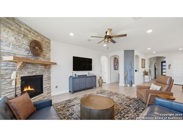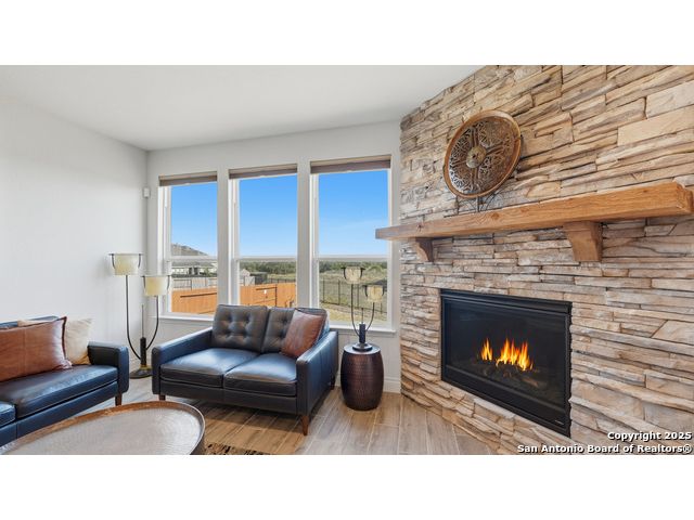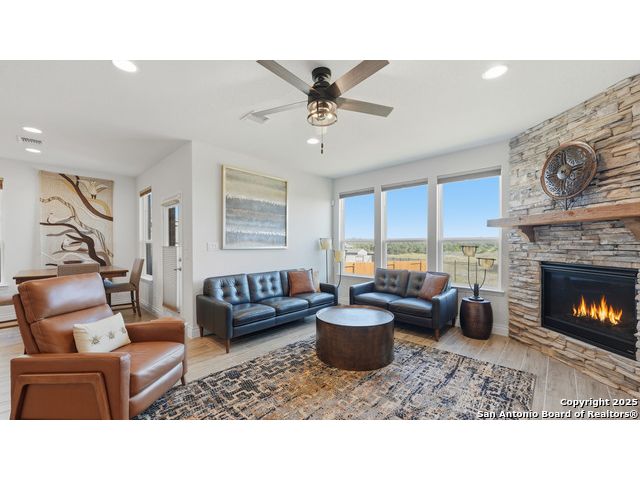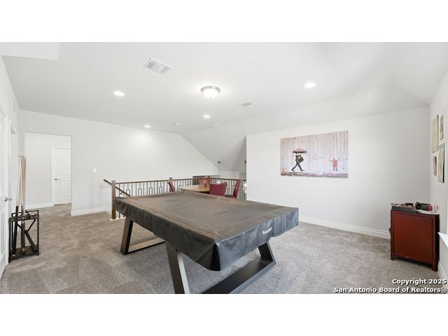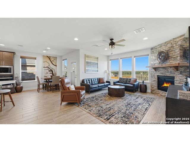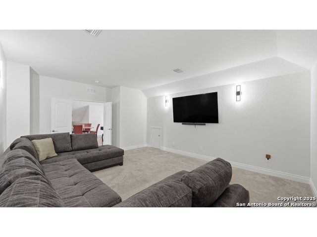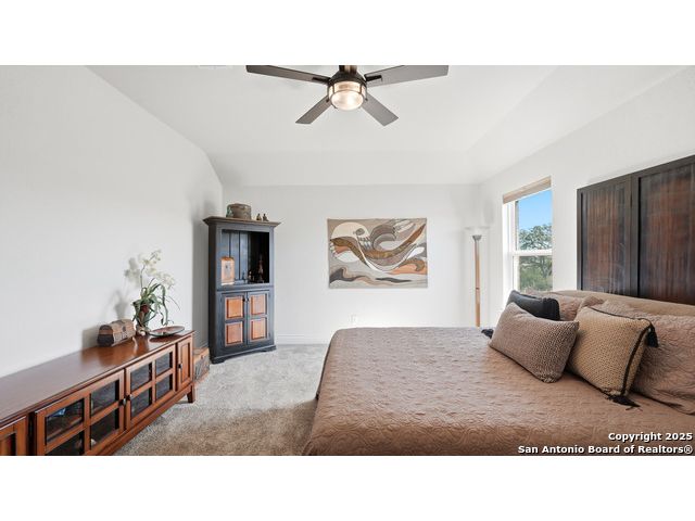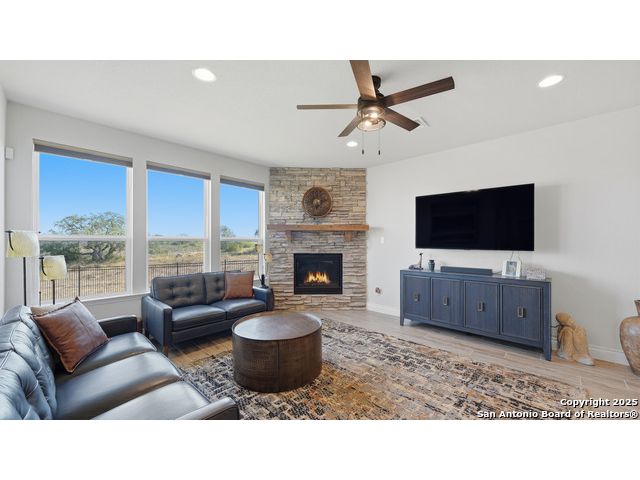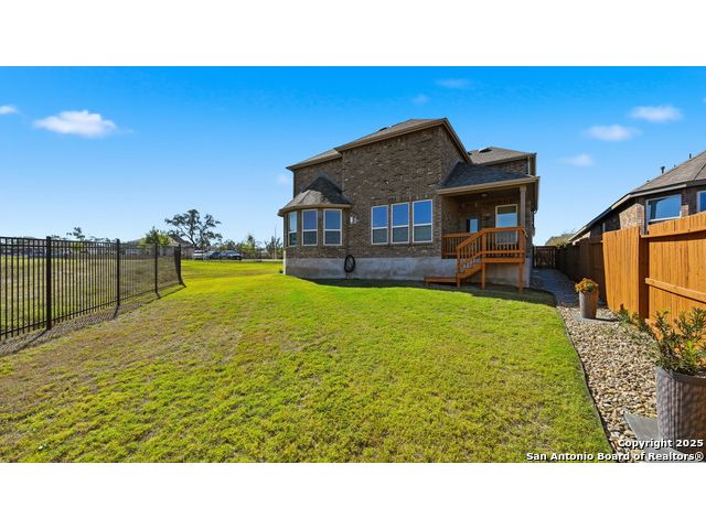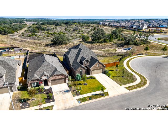 Welcome to this beautiful home in the popular Veramendi community of New Braunfels! Tucked away at the end of a quiet cul-de-sac, this spot backs up to a peaceful greenbelt-where you can often see cows grazing just beyond the fence. The large backyard is perfect for relaxing or entertaining, and it's just a short walk to the neighborhood elementary school. This 2-year-old home has been very lightly lived in and is in excellent condition, with tons of upgrades throughout, including a whole-home water softener, custom window coverings, and upgraded lighting and fans. Inside, you'll find 3,382 square feet of space with 4 bedrooms, 3 bathrooms, a media room, a game room, and a convenient office nook-perfect for managing household tasks. The primary suite features a cozy bay window, and the home is zoned to NBISD. Check the supplements for a full list of upgrades-this one truly has it all - including the Texas hillcountry view out the back!
