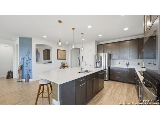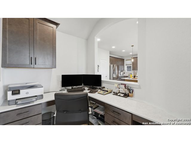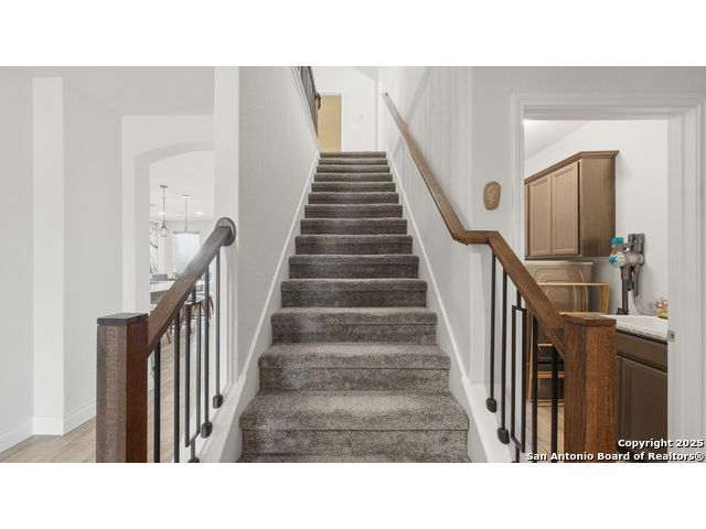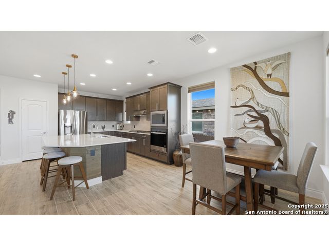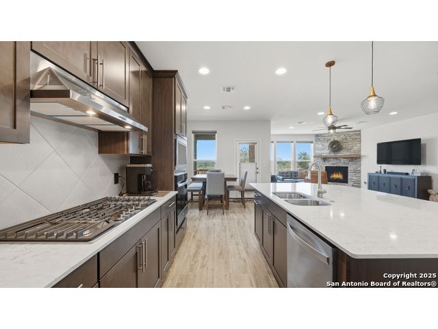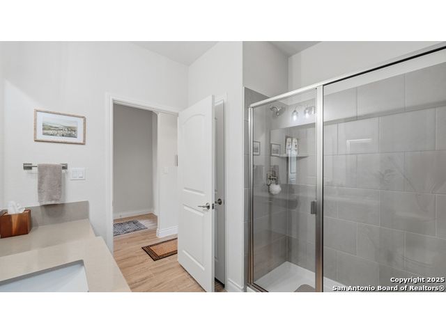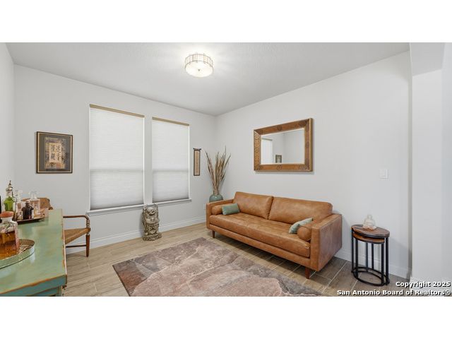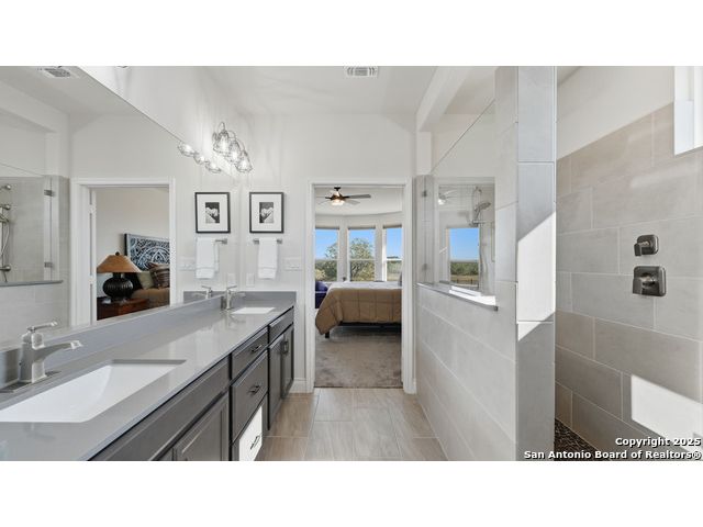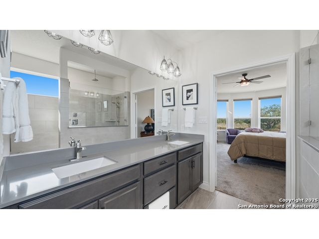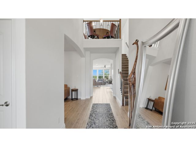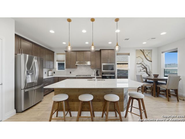 Welcome to this beautiful home in the popular Veramendi community of New Braunfels! Tucked away at the end of a quiet cul-de-sac, this spot backs up to a peaceful greenbelt-where you can often see cows grazing just beyond the fence. The large backyard is perfect for relaxing or entertaining, and it's just a short walk to the neighborhood elementary school. This 2-year-old home has been very lightly lived in and is in excellent condition, with tons of upgrades throughout, including a whole-home water softener, custom window coverings, and upgraded lighting and fans. Inside, you'll find 3,382 square feet of space with 4 bedrooms, 3 bathrooms, a media room, a game room, and a convenient office nook-perfect for managing household tasks. The primary suite features a cozy bay window, and the home is zoned to NBISD. Check the supplements for a full list of upgrades-this one truly has it all - including the Texas hillcountry view out the back!