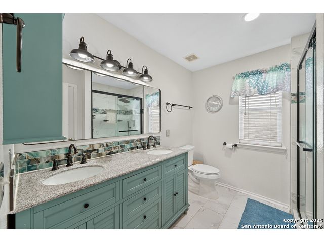 Welcome to your own private retreat in the gated community of Walker Ranch. This beautifully updated 5 bedroom, 3 bath home offers over 3,155 square feet of thoughtfully crafted living space, including a secondary bedroom and full bath downstairs that provides flexibility for guests, work space, or extended stay visitors. The chef's kitchen stands at the heart of the home with gas cooking, double ovens, and seamless connection to the bright, open living and dining areas. Upstairs, a spacious game room offers the perfect setting for movie nights, playtime, or an additional lounge space. The expansive primary suite is a true sanctuary, featuring generous proportions, room for a private sitting area, and a beautifully remodeled en suite bath designed with modern, elevated finishes that deliver a spa like experience. Step outside and discover the backyard oasis you'll want to enjoy year round. In 2024, the outdoor space was transformed with a designer heated pool, upgraded decking, and refreshed landscaping, creating a resort style atmosphere ideal for gatherings and relaxation. Additional 2024 upgrades include remodeled bathrooms, new appliances, a new fence, and a playscape, making this home truly move in ready with elevated enhancements throughout. Situated on a corner lot within a sought after, gated community, this property brings together space, style, and exceptional updates in a location that is hard to match. Homes of this size and caliber are rare, so don't miss your opportunity to tour this standout residence.
