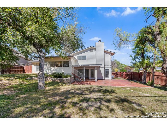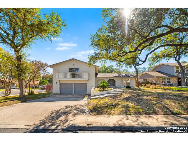 RARE SPLIT LEVEL. MAIN LEVEL FEATURES HUGE LIVIING ROOM, LARGE KITCHEN, BREAKFAST ROOM AND FLORIDA ROOM/DINING ROOM AND A UPDATED HALF-BATH. FLOORING IN MAIN LIVING AREA REPLACED APPROX 2 YEARS AGO. KITCHEN HAS BEEN UPDATED AND FEATURES GRANITE COUNTERTOPS, BLACK UPGRADED APPLIANCES INCLUDING COOKTOP, OVEN AND REFRIGERATOR. LOWER-LEVEL FEATURES A FAMILY ROOM WITH BRICK FIREPLACE. THE TOP LEVEL HAS FOUR BEDROOMS INCLUDING LARGE MASTER SUITE WITH BATH. THE BATHROOM FEATURES UPDATED VANITY AND TUB/SHOWER COMBO. THE OTHER THREE BEDROOMS ARE BIG WITH LOTS OF STORAGE. THE SECOND BATH HAS ALSO BEEN UPDATED AND INCUDES NEW STYLE VANITY AND A TUB/SHOWER. BIG CORNER LOT WITH PATIO SLAB MADE FOR BARBEQUING AND ENJOYING THOSE QUIET NIGHTS. CLOSE TO UTSA, SIX FLAGS, SHORT DISTANCE TO DOWNTOWN AS WELL AS BOERNE. ALL THIS ONE NEEDS IS YOU.