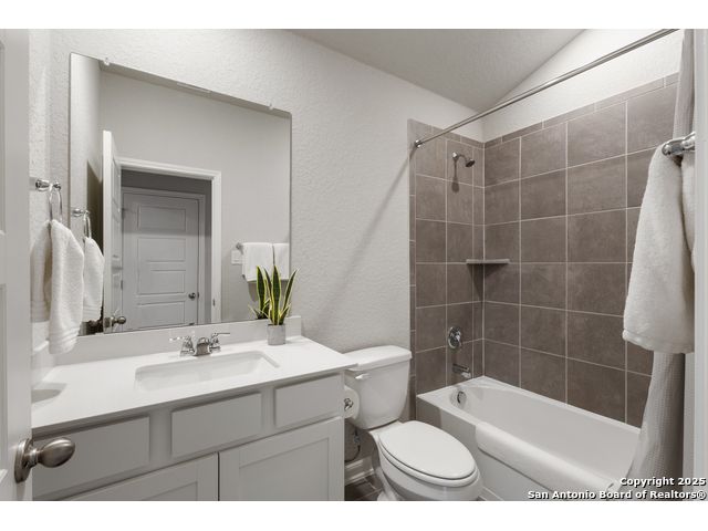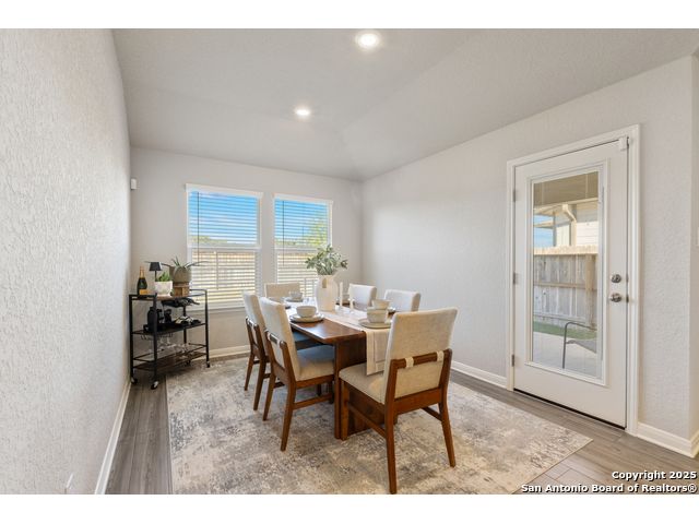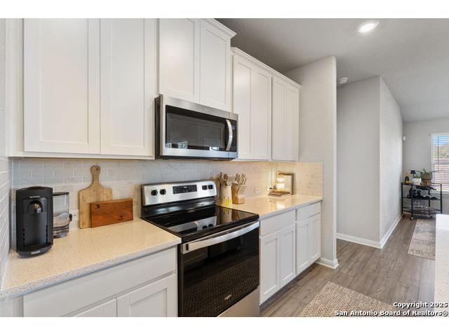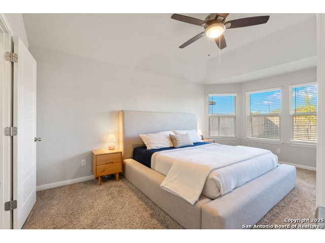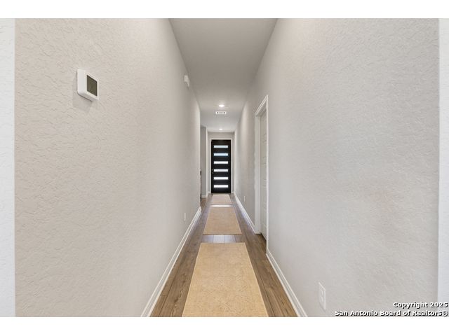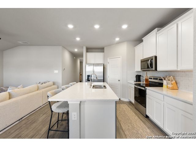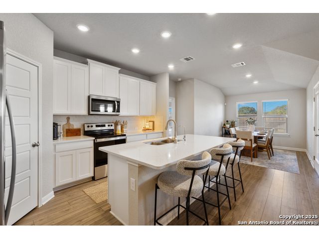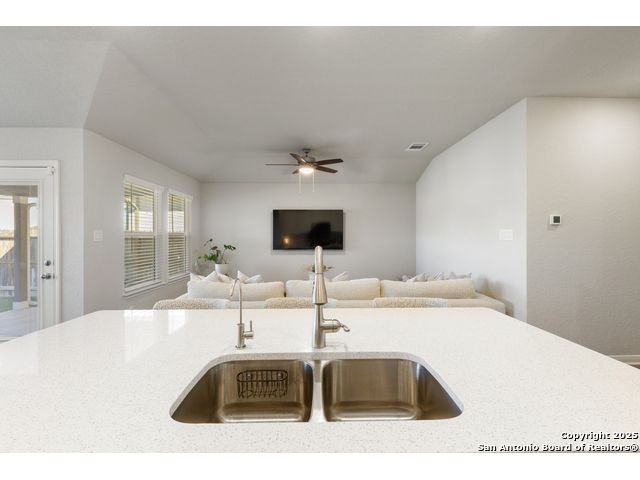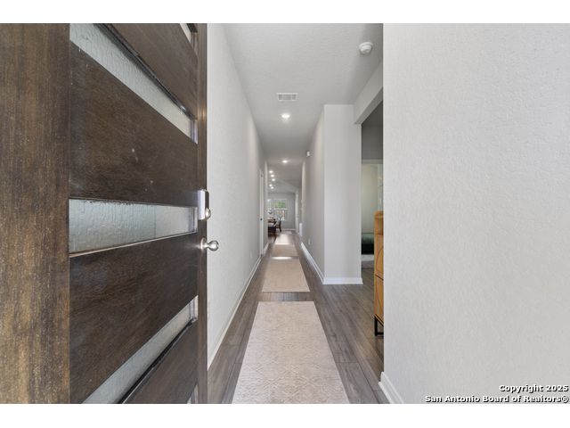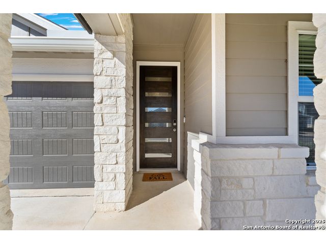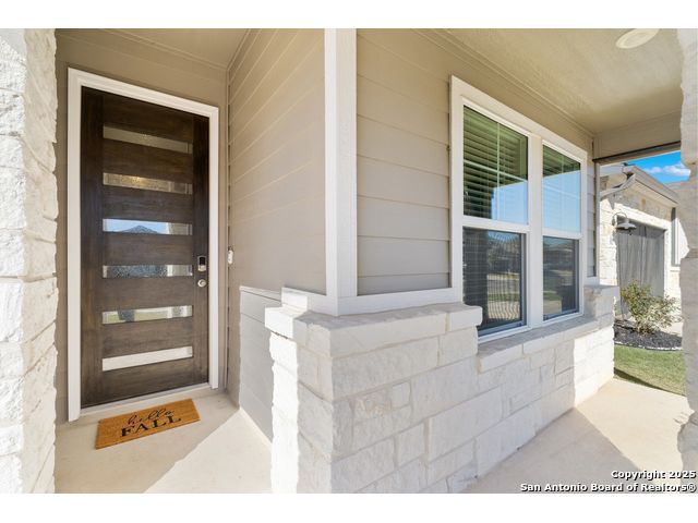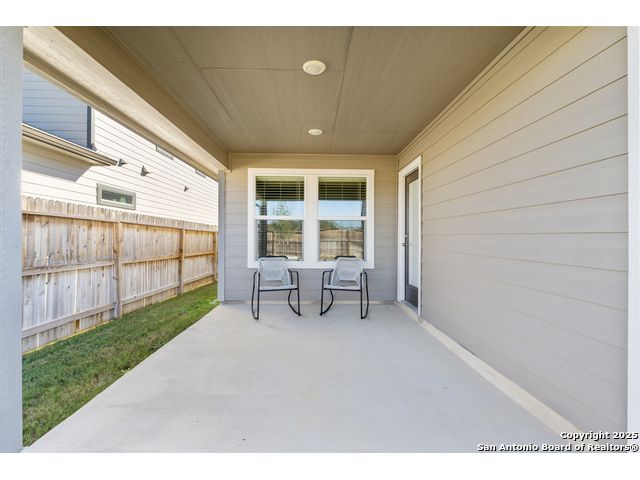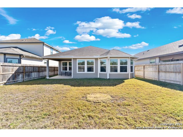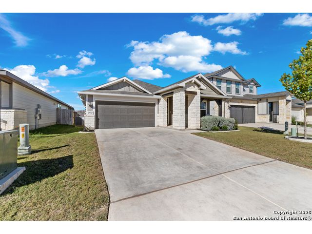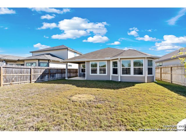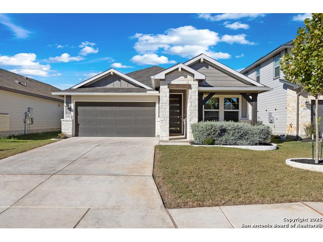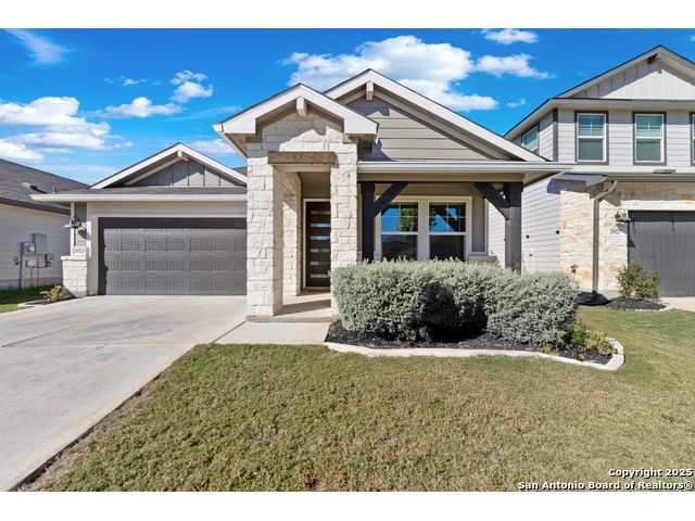 This lightly pre-owned home, built in 2023, is in like-new condition and offered at a much more affordable price than new construction! Located in a highly desirable area with little to no new homes available in this price range, this is a rare opportunity to make this beautiful home yours. From the moment you arrive, you'll notice the modern farmhouse curb appeal, featuring limestone and siding accents, freshly updated landscaping, and flush-mounted gutters. Inside, a long and inviting hallway welcomes you in, with two spacious guest bedrooms located midway down the hall, each with walk-in closets and a shared full bathroom. The open living area is bright and inviting, flowing seamlessly into the kitchen, which features stunning quartz countertops, ample counter space, a walk-in pantry, and all appliances (including the refrigerator) conveying with the sale. A formal dining room sits just off the living space, perfect for hosting family dinners or entertaining guests. The private primary suite, located at the back of the home, offers a peaceful retreat with gorgeous bay windows, dual sinks, a walk-in shower, and a spacious walk-in closet. Step outside to your large backyard, ideal for gatherings, pets, or simply relaxing under the covered patio. With a full irrigation system in the front and back, the yard is easy to maintain and ready for your personal touch, whether it's a garden, playset, or outdoor kitchen. This home is part of the highly acclaimed Comal ISD, known for excellent schools and strong community spirit. Conveniently situated near shopping, dining, and major highways, you'll enjoy being just minutes from everyday essentials and only a short drive from San Antonio's best attractions. This home also enjoys low property taxes and fantastic neighborhood amenities including a community pool, dog park, and playground, perfect for families and pets. Don't miss your chance to own this move in ready home that perfectly blends modern comfort, thoughtful design, and an unbeatable location! Seller will pay all of buyer's closing costs, leave all appliances and water softener in the house!