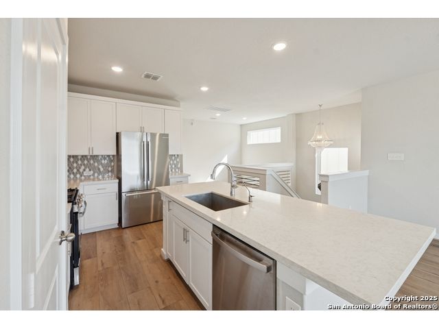 Welcome to this modern 3 bedroom, 2.5 bath home offering 1,656 sq ft of thoughtfully designed living space. Built in 2021 and in like-new condition, this layout delivers the perfect balance of functionality and charm. The open and airy main living area flows seamlessly into the dining space and kitchen. The kitchen is complete with a center island, quartz-style counters, white shaker cabinetry, stainless steel appliances, and a stylish backsplash, an ideal setup for everyday cooking or hosting guests. The primary suite provides a relaxing retreat with an en-suite bath, dual vanities, a walk-in shower, and a generous walk-in closet. Two additional bedrooms offer flexibility for family, guests, or workspace needs, and the dedicated laundry room adds convenience to day-to-day living. Outside, you'll find a comfortable yard space and room to unwind, entertain, or enjoy a quiet evening. With its neutral finishes, clean contemporary exterior, and well-maintained condition, this home delivers an ideal mix of style, comfort, and practicality, ready for you to make it your own.