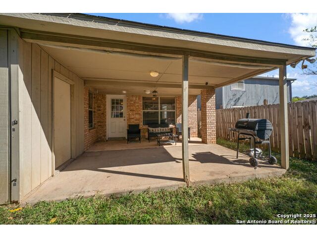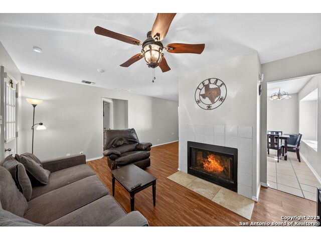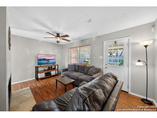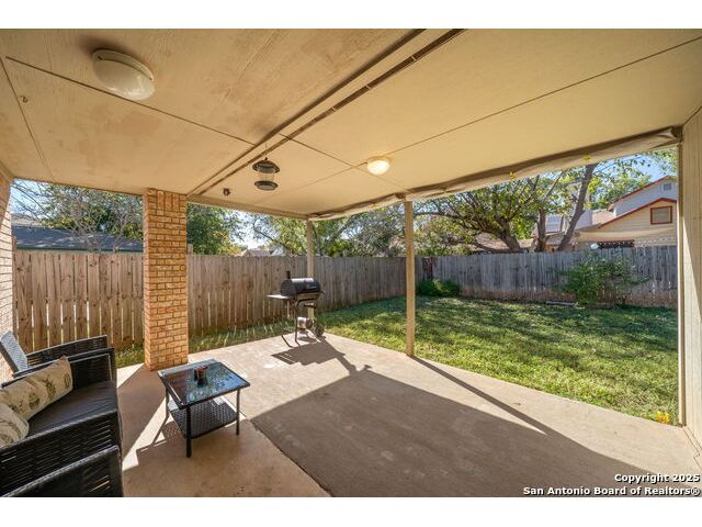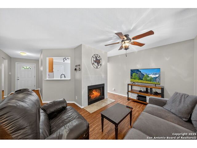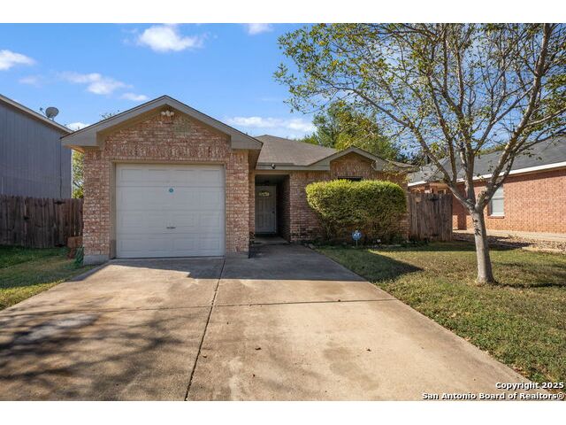 Welcome home to this charming single-story retreat priced to sell! The home features four sides brick for added energy efficiency. You'll love the inviting living room with its cozy fireplace-perfect for gathering with family or friends-and the spacious backyard offers plenty of room for gardening, play, or relaxing under the Texas sky. A large storage room off the patio adds valuable extra space for seasonal items, etc. Conveniently located just minutes from Loop 1604, this home offers the perfect blend of comfort, practicality, and accessibility.