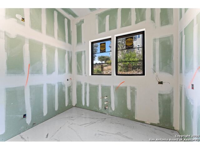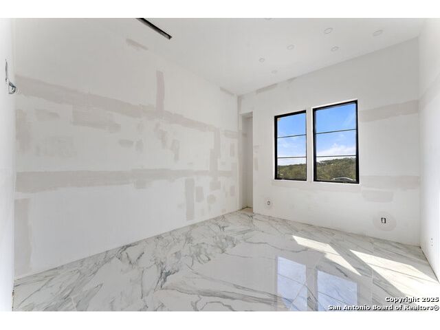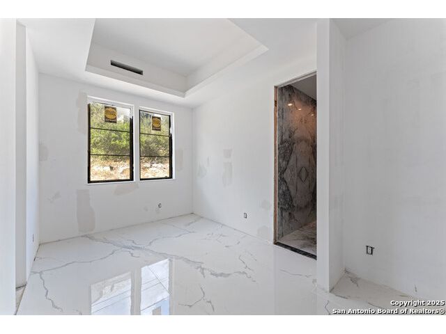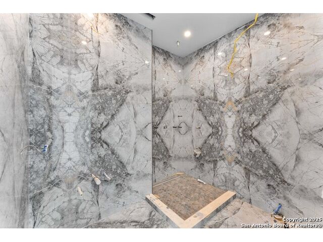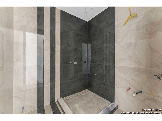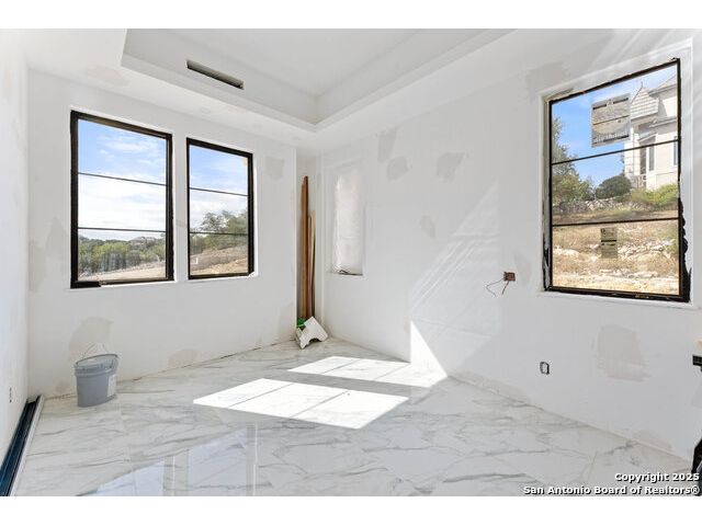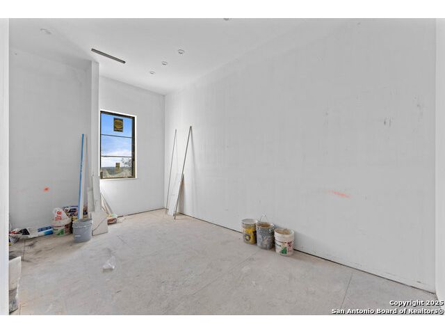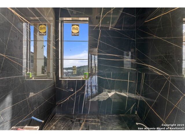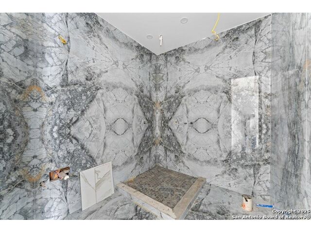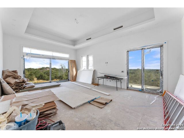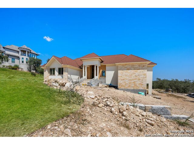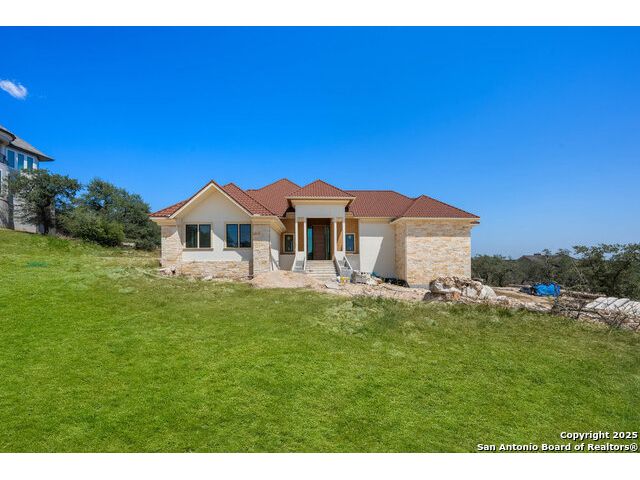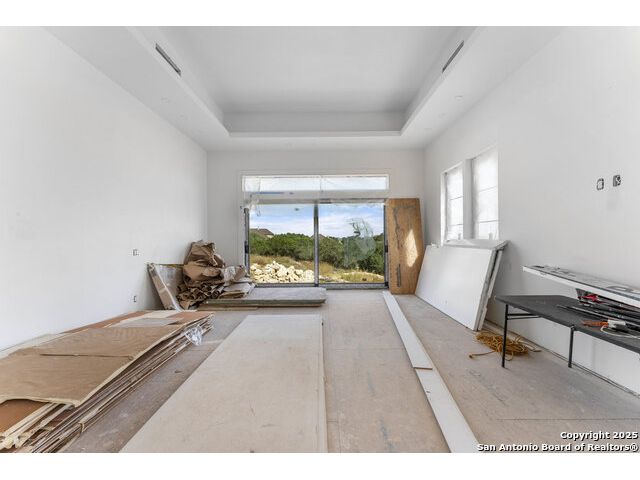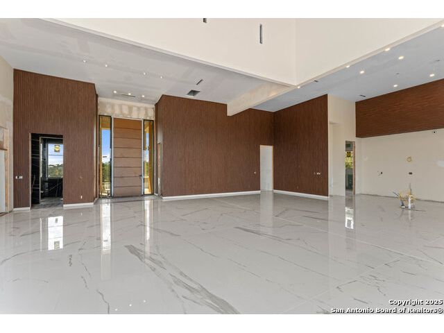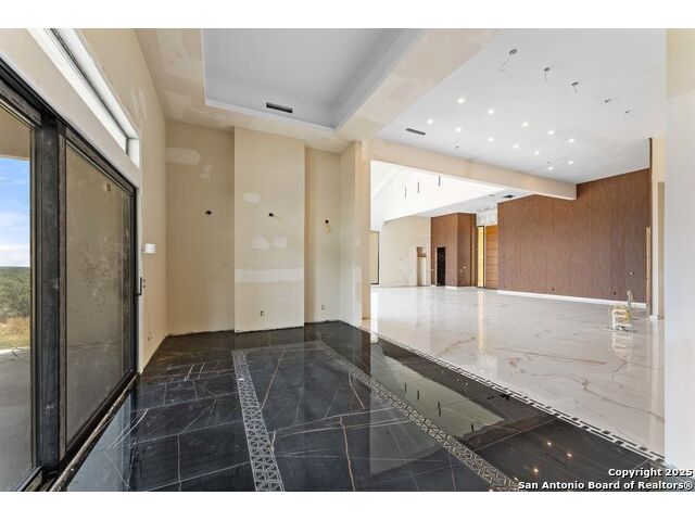 Located in the exclusive gated community of Cooper Ridge in New Braunfels, this nearly complete luxury estate offers over 5,500 sq ft in the main home plus a 1,000 sq ft guest house on almost two acres of Hill Country land. Currently about 80 done complete and projected to be worth around $2.3 million once finished, this property presents an incredible opportunity for an investor seeking strong profit potential or a homeowner looking to customize their forever home with built-in equity already in place. Designed with both elegance and lifestyle in mind, it features a four-car garage with flex or man cave potential, a wellness level downstairs with a gym, jacuzzi, sauna, steam room, and ample storage. High-end finishes include 120x240 cm ceramic tile floors, wood accents, and custom wall paneling. The living room impresses with a soaring 32-foot ceiling and 12-foot glass facade panels that open seamlessly to the backyard and pool area, anchored by a stunning 9 ft x 14 ft custom front door. Every detail from the tile roofing to the interior craftsmanship has been executed at a high standard, making this as-is offering a rare chance to complete a masterpiece in one of New Braunfels' most desirable communities.