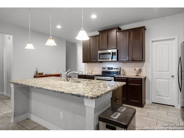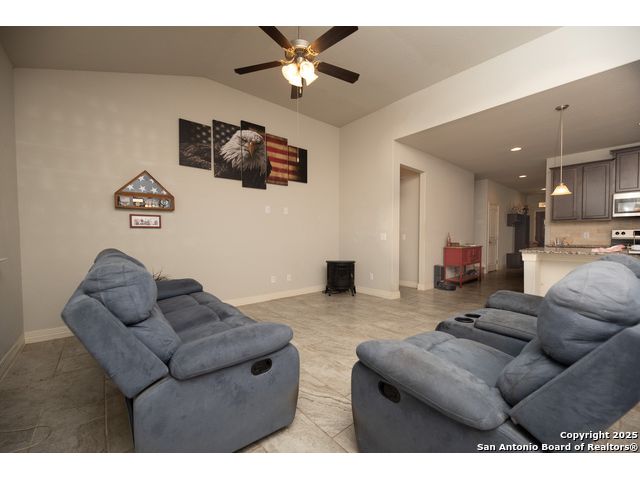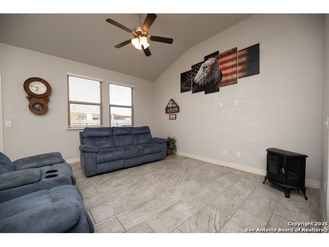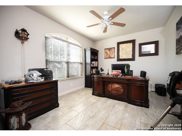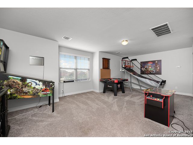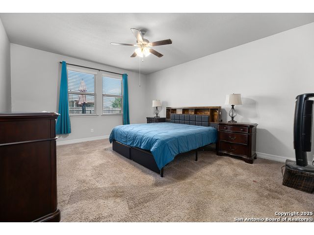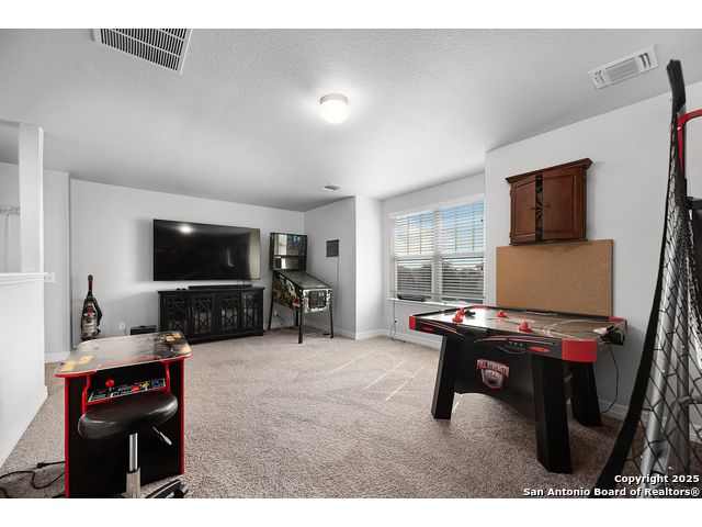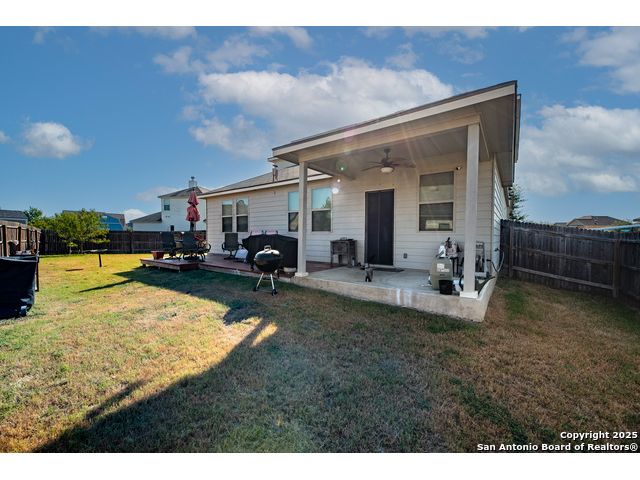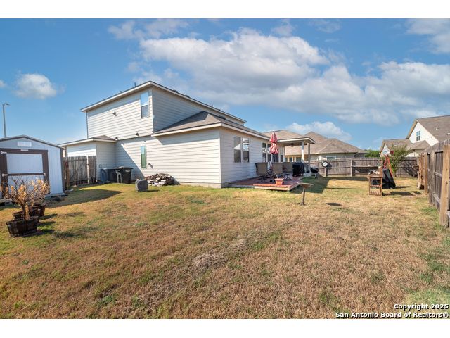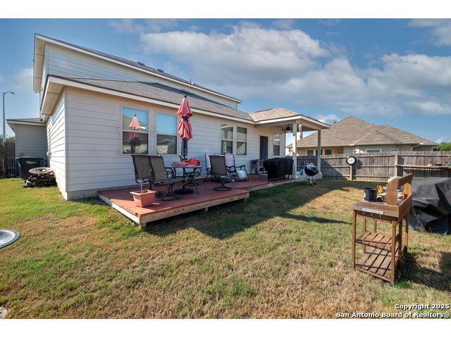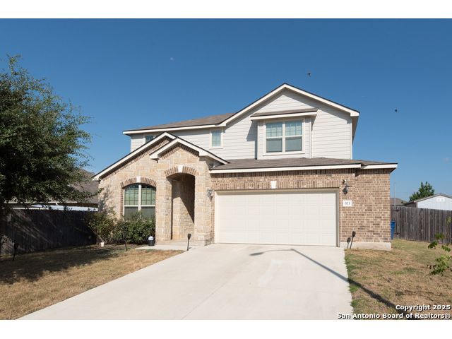Nestled on a peaceful cul-de-sac, this 4 bedroom, 2.5 bath home offers the perfect blend of comfort, functionality, and style. The primary suite is conveniently located on the main floor, providing privacy and ease of access, while three additional bedrooms and a large game room/second living area are upstairs-ideal for family living or entertaining guests. A dedicated office space downstairs makes working from home a breeze. The open-concept kitchen features granite countertops, stainless steel appliances, plenty not counter space and a large island. The open living, kitchen, dining is the perfect space for family gatherings. Step outside to the covered patio and extended wood deck, perfect for outdoor entertaining. The fully fenced backyard offers plenty of space for kids, pets, or gardening. Relax at the neighborhood pool and playground. Just a short river to Gruene and easy access to Hwy 35 making it perfect for commuters.