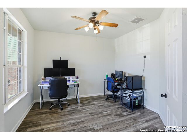Nestled at the end of a quiet cul-de-sac, this thoughtfully designed two-story home offers a generous and well-balanced floor plan. The main living area features a welcoming fireplace and flows seamlessly into the dining space and kitchen, creating a cohesive environment for everyday living. The second level includes a spacious loft that can serve as an additional living area, studio, or workspace. The primary suite offers a comfortable retreat with dual vanities, a separate tub and shower, and a walk-in closet. Three additional bedrooms complete the upper level. Outdoors, the backyard provides ample space for relaxation or future personalization. Solar panels included. Located with convenient access to nearby shopping, green spaces, and major travel routes.