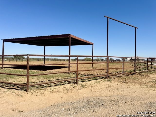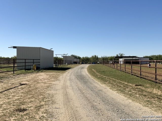 Pristine 4 bedroom, 3.5 bath, 2795sq ft. custom house that sits on top of the highest point on the property on 13.2 in Frio County. Large extended back patio, over-sized garage/carport, inground large fiberglass pool with shade structures, full size rodeo/roping arena with pens, 5 horse pens with stalls, 2 shaded dogs kennels, tack room, large hay/equipment barn, chicken/goat coops, fenced, cross fenced, and cattle guards. Interior of home has vaulted ceilings, large rock fireplace, cypress oak cabinets and doors, office with walk in safe, oversized bedrooms, large kitchen with tons of cabinets and storage space. Ag exempt, Devine ISD schools and located close to IH 35. Additional connected lots on each side available!! 10.5 & 10.98 acres for a combined acreage of 34.68