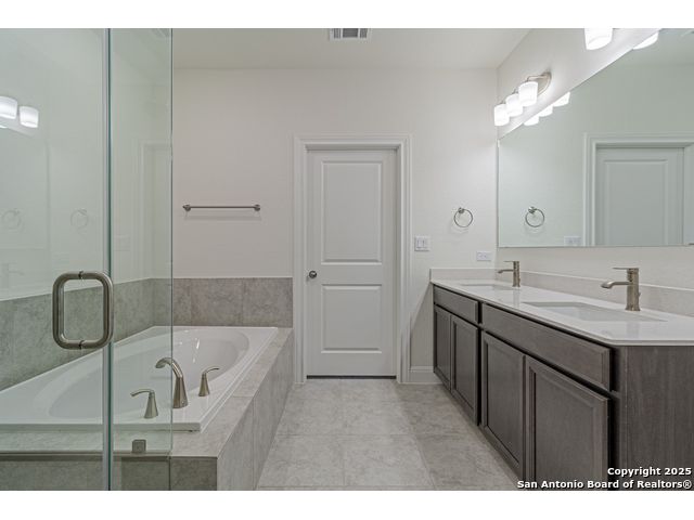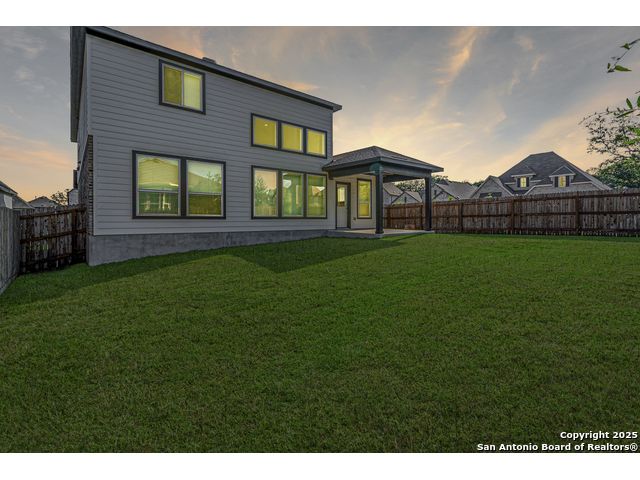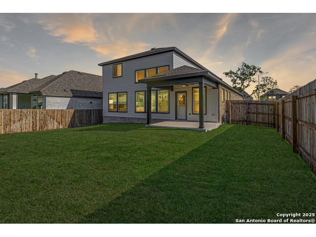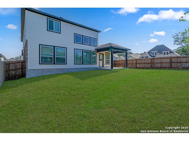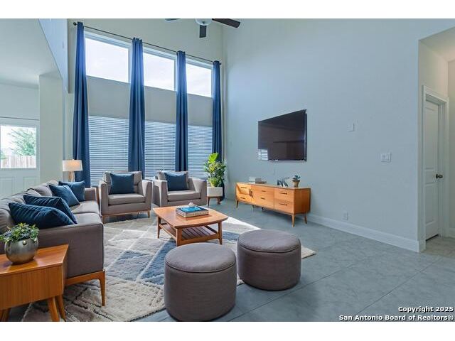 Welcome to this stunning 4-bedroom, 3.5-bath home offering 2,758 sq ft of beautifully designed living space in the highly sought-after Davis Ranch community. Built by David Weekley Homes, the Morrison floor plan showcases an open-concept layout with soaring 20-foot ceilings, expansive windows, and abundant natural light throughout the main living area-perfect for everyday living and entertaining. The chef's kitchen features granite countertops, custom cabinetry, a large center island, and stainless steel appliances, opening seamlessly to the dining and family rooms. The private primary suite, located on the main level, includes a walk-in closet with built-in shelving, a spa-inspired bath with soaking tub, separate tiled shower, and dual vanities. A dedicated office/study with French doors provides the ideal space for working from home or quiet reading. Upstairs, a spacious loft connects to three well-sized secondary bedrooms and two full baths, offering flexibility for guests, hobbies, or media space. The backyard is fully fenced for privacy and includes a covered patio, creating an inviting outdoor area for relaxing or entertaining. Located within Northside Independent School District (NISD), Davis Ranch offers desirable community amenities including a pool, playground, and walking trails. Conveniently situated near major roadways, residents enjoy easy access to shopping, dining, and entertainment at Alamo Ranch, plus proximity to Loop 1604, Highway 151, and Seaworld San Antonio. A perfect blend of comfort, space, and location-this well-maintained home delivers modern living within one of northwest San Antonio's most sought-after master-planned communities.