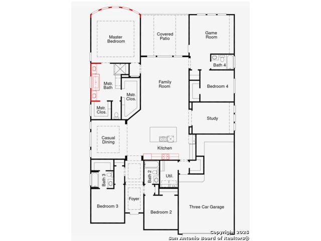 Welcome to The Hideaway, the largest single-story home we offer in Mayfair! This impressive residence features four spacious bedrooms and four full baths. The high ceilings in the great room create an open and inviting atmosphere, while a unique tandem three-car garage adds convenience. Enjoy dedicated spaces with a study, a separate dining area, and an exceptional game room situated at the rear of the home-truly a standout feature in a one-story layout. With 2,902 square feet of living space, the possibilities are endless! The primary bedroom boasts a charming bow window, leading to a luxurious primary bath equipped with a large walk-in shower and two generous closets. Step outside to discover the extended covered patio adorned with a stunning vaulted ceiling, perfect for outdoor relaxation. The gorgeous granite countertops throughout add a touch of elegance to this exceptional home. Don't miss your chance to experience all that The Hideaway has to offer!