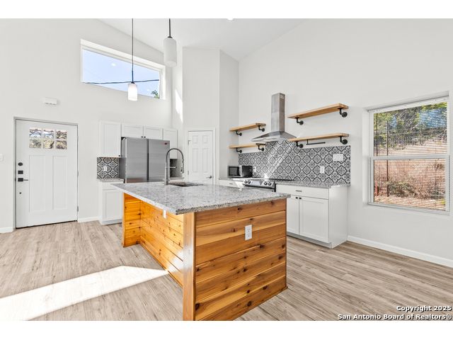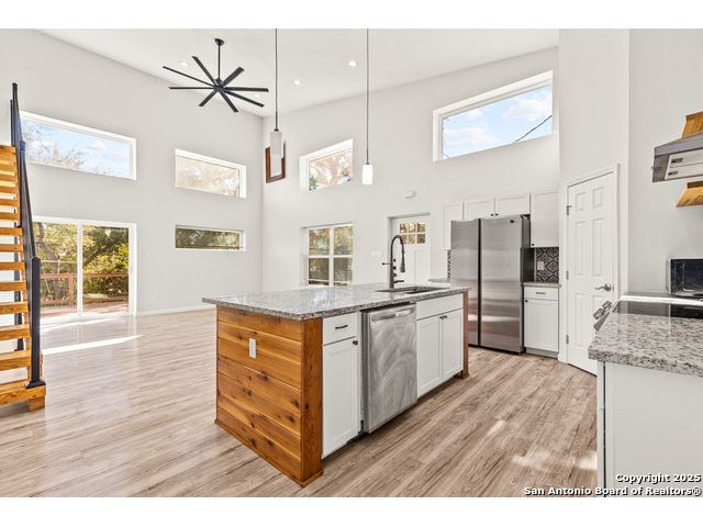 This custom barndominium home is located in the beautiful Hill Country of Canyon Lake. The open-concept floor plan and high ceilings create a spacious, airy feel. The kitchen features a stunning island, granite countertops, pantry, and stainless steel appliances. Need more than two bedrooms? You're in luck-this home includes a large loft that can serve as a second living area, office, or game room. Step outside to a spacious deck overlooking scenic Hill Country views and a fenced yard perfect for relaxation or entertaining. Schedule your showing today before it's too late!
