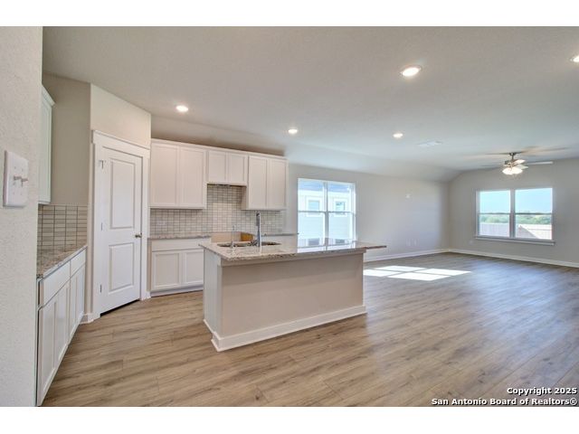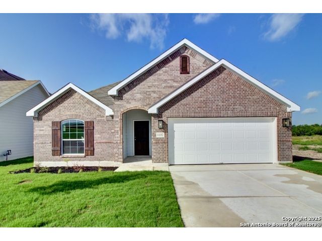 Welcome to the Kimbell Plan, a thoughtfully designed single story home that blends comfort, functionality, and modern style. This home offers four spacious bedrooms, two full bathrooms, and a dedicated office conveniently located off the foyer near the front entry, providing an ideal space for remote work or study. The charming brick exterior enhances the home's durability while adding timeless curb appeal. Inside, the open concept layout connects the kitchen, living, and dining areas, creating a bright and inviting environment that is perfect for both everyday living and entertaining guests. The kitchen is a true centerpiece featuring stainless steel gas appliances, an elegant center island, beautiful omegastone countertops, a deep undermount sink, a corner pantry for extra storage, and a ceramic tile backsplash. The owner's suite is a private retreat with ample natural light and a well appointed bathroom that includes dual sinks and a recessed ceramic tile shower pan designed for comfort and style. Additional features include a two car garage for convenience and a covered patio that offers the perfect setting for outdoor relaxation or dining. The Kimbell Plan combines elegance and practicality, making it an excellent choice for any lifestyle.