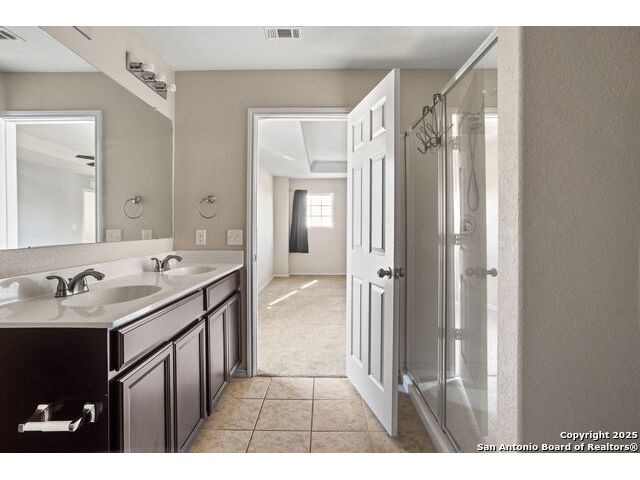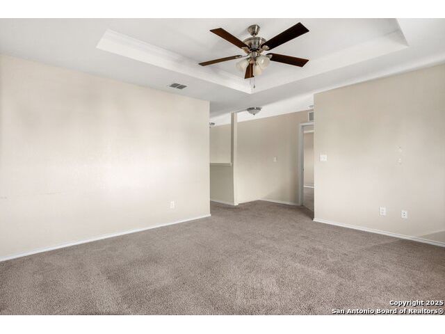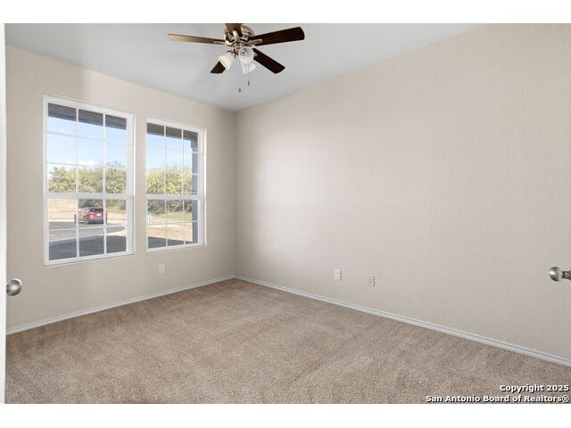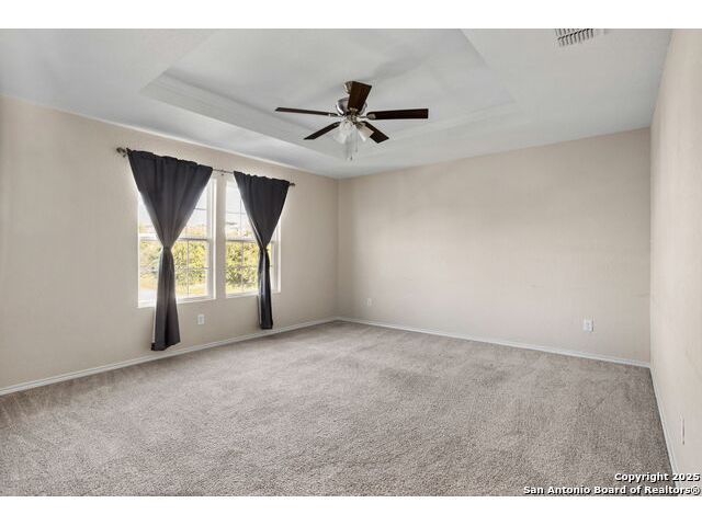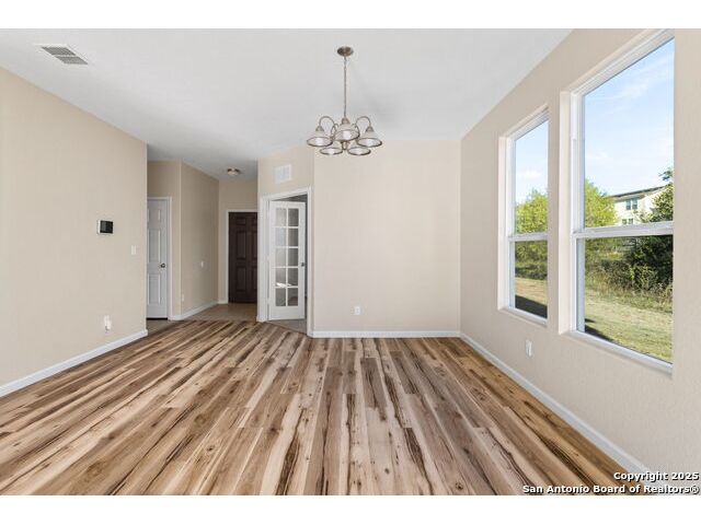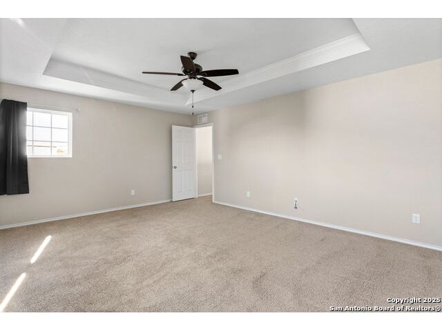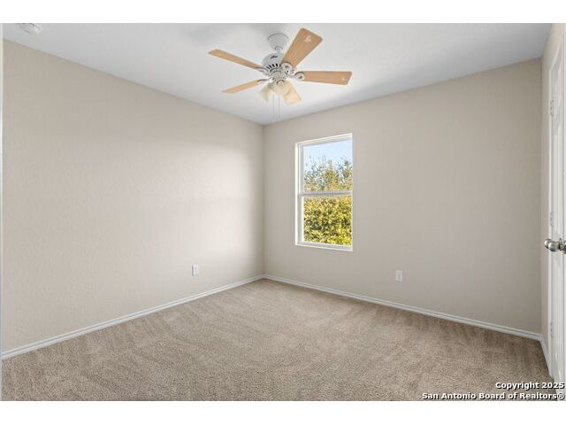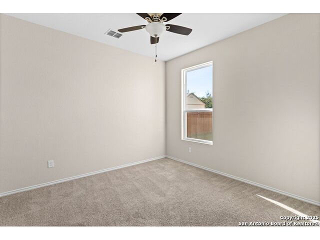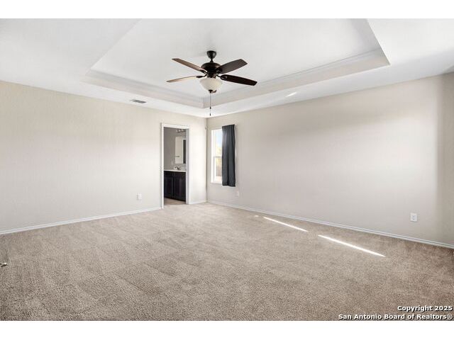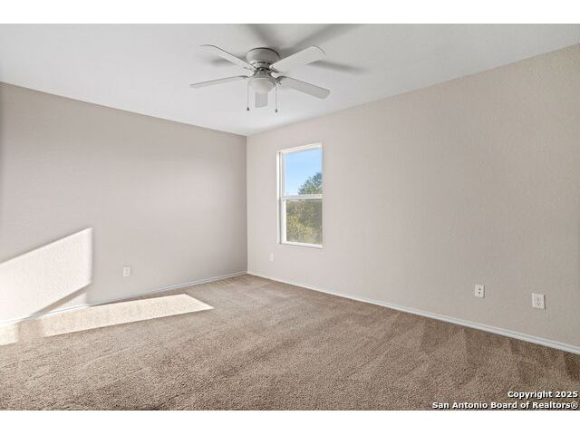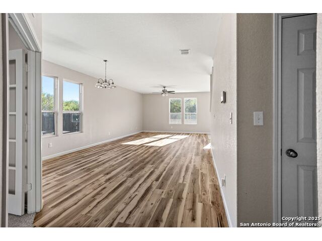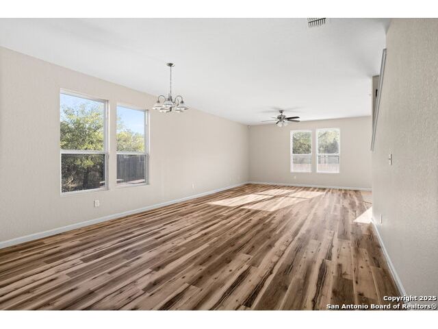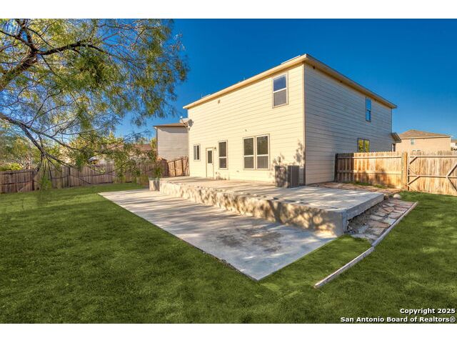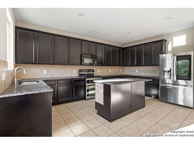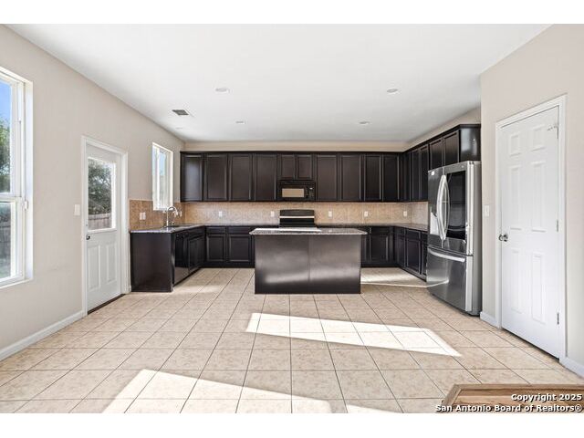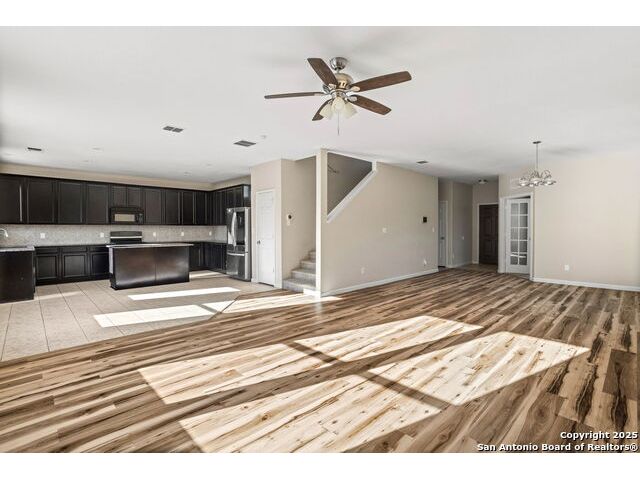**Seller Finance Available** Welcome to this stunning 4-bedroom, 3-bath home perfectly situated on a quiet cul-de-sac, offering privacy and comfort in one of San Antonio's desirable communities. Step inside to an inviting open floor plan featuring a spacious office and a beautifully designed kitchen with 42-inch espresso cabinets, granite countertops, and a stylish tile backsplash-ideal for both everyday living and entertaining. Enjoy the elegance of laminate flooring, 9-foot ceilings, and a tray ceiling in the primary suite that adds an extra touch of sophistication. The primary bathroom includes a double vanity, large walk-in shower, and ample storage space. Outside, you'll love the backyard retreat backing to a greenbelt-perfect for added privacy and an extended concrete patio ideal for gatherings or relaxing evenings under the Texas sky. This home truly blends modern design, functionality, and a peaceful location.