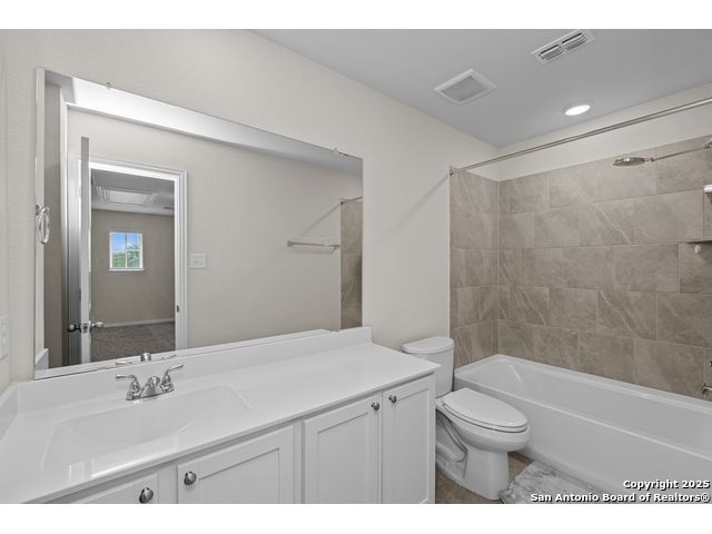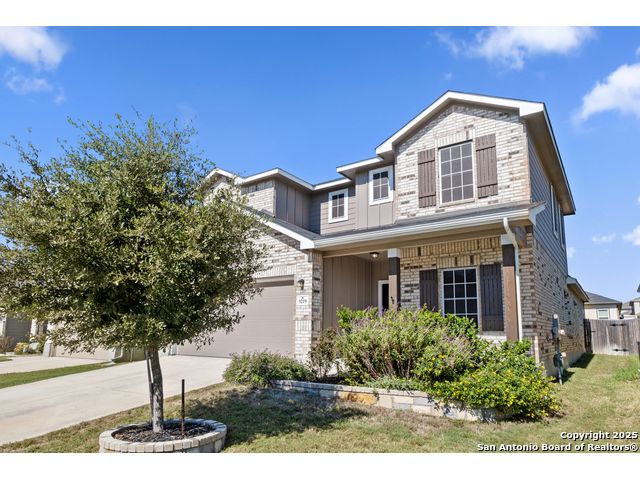 VA LOAN Assumption is available for a qualified Veteran at a 4.09% Rate!!!. Home is Located in the Notting Hill Neighborhood conveniently located near Randolph AFB & Fort Sam Houston Joint Base and near local shopping, dining, and major highways. This home offers exceptional comfort and functionality with 4 bedroom and an office, 2 1/2 bath and a versatile loft space- perfect for a theatre room, or a second living space. The Primary suite and office are conveniently located downstairs. The primary bath features a separate garden tub and shower, dual vanities and walk in closet. The open concept kitchen, dining and living room layout is enhanced with a gourmet Kitchen, granite countertops, walk in pantry, gas cooking, stainless steel appliances, island breakfast bar and eat in dining area. The living Room is perfect for entertaining guest inside or under the cover patio just off the living space. There is a large fenced in yard perfect for your furry friends. The second floor has three secondary bedrooms, a full bath and loft area. The home has 3 Sides brick with fiber cement for easy maintenance. Neighborhood amenities to include Pool, Park, Playground.
