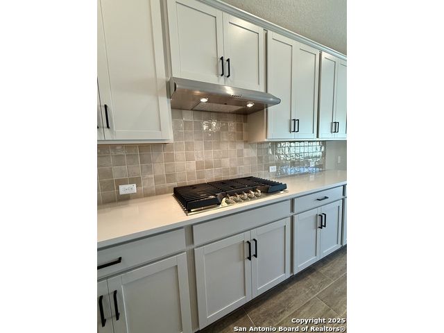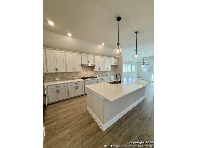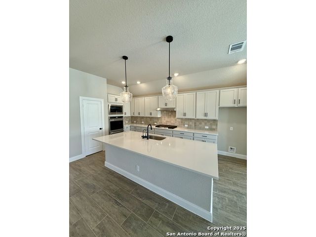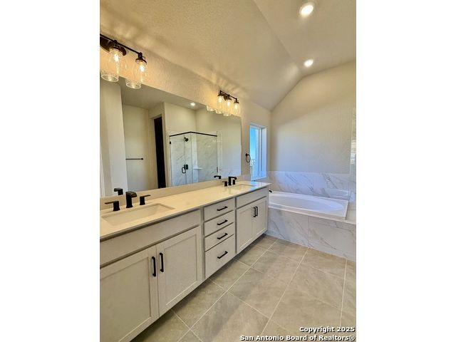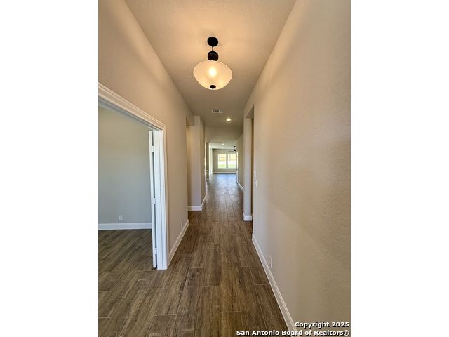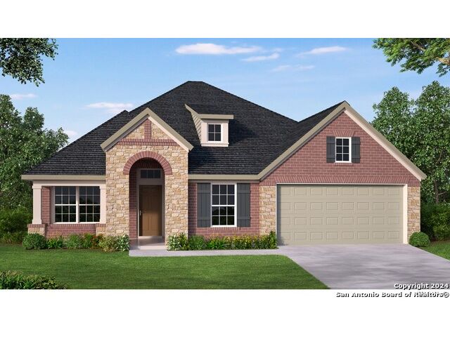 1319 Webb Creek blends modern elegance with Hill Country charm. This thoughtfully designed home offers 3 bedrooms, 2.5 baths, study and 3-car garage, all wrapped in a stunning modern elevation featuring painted brick, stone accents, and a welcoming front porch. Step inside to discover a light-filled, open-concept layout where the kitchen, dining, and family rooms seamlessly connect - perfect for gathering with friends and family. The chef's kitchen shines with painted cabinets, quartz countertops, and striking matte black plumbing and lighting fixtures, all hand-selected through our Design Studio to bring timeless style and warmth to every corner. The luxurious Owner's Retreat offers a peaceful sanctuary with a spacious bedroom and a spa-inspired Owner's Bath featuring a soaking tub and separate shower. A large walk-in closet adds practical luxury to the suite. Two comfortable secondary bedrooms offer privacy and versatility, each with sizable closets and close access to the full secondary bath. The sunlit study is the perfect spot for a home office, creative space, or reading lounge. You'll love the durable, stylish flooring throughout the main living areas - with not a stitch of carpet anywhere except the bedrooms - adding to the home's clean, cohesive design.